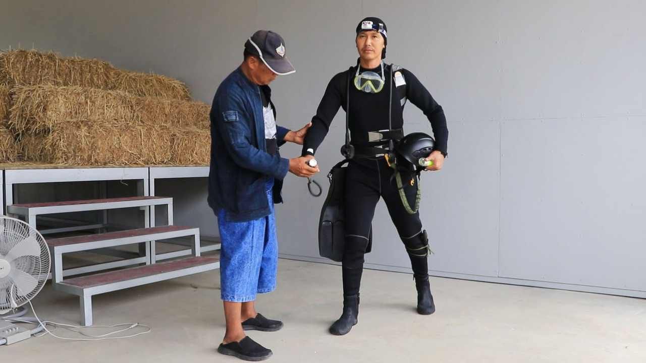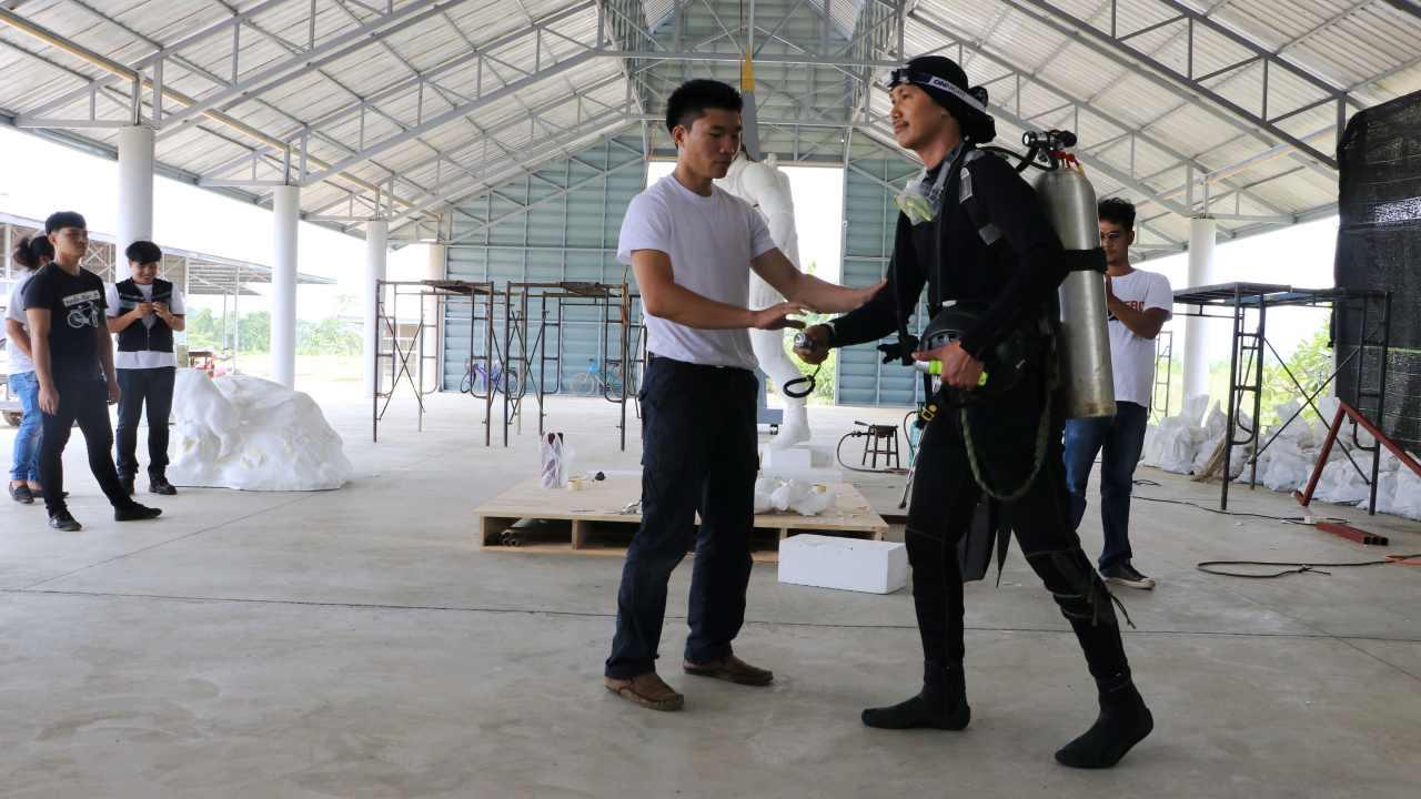 ทั้งนี้ เพื่อให้งานสมจริงและดีที่สุด อาจารย์เฉลิมชัยได้ให้ทีมงานแต่งชุดประดาน้ำครบชุดและช่วยกำหนดท่าทาง การยืน อิริยาบถ ระดับการมองของตัวแบบ และเก็บภาพทุกมุมเพื่อไปประกอบการขึ้นหุ่นรูปปั้นต่อไป.