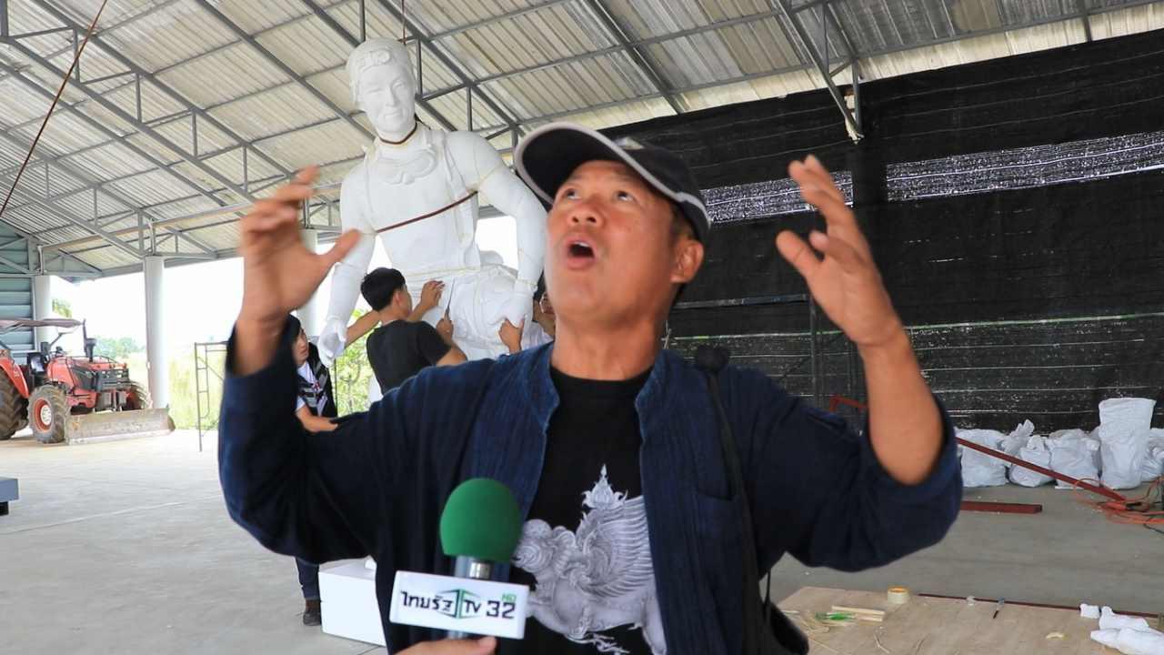 "ต้น" สราวุธ คำมูลชัย ศิลปินเชียงรายที่มีชื่อด้านงานประติมากรรมพร้อมเพื่อนๆ ได้ขนดินน้ำมันที่ต้มเสร็จพร้อมอุปกรณ์มาเตรียมพร้อมสำหรับเริ่มงานในวันนี้ โดยอาจารย์เฉลิมชัย ได้เข้ามาพูดคุยแนะนำกับทีมงานในเรื่องการจัดวางท่าทางปรับแบบหุ่นโฟม