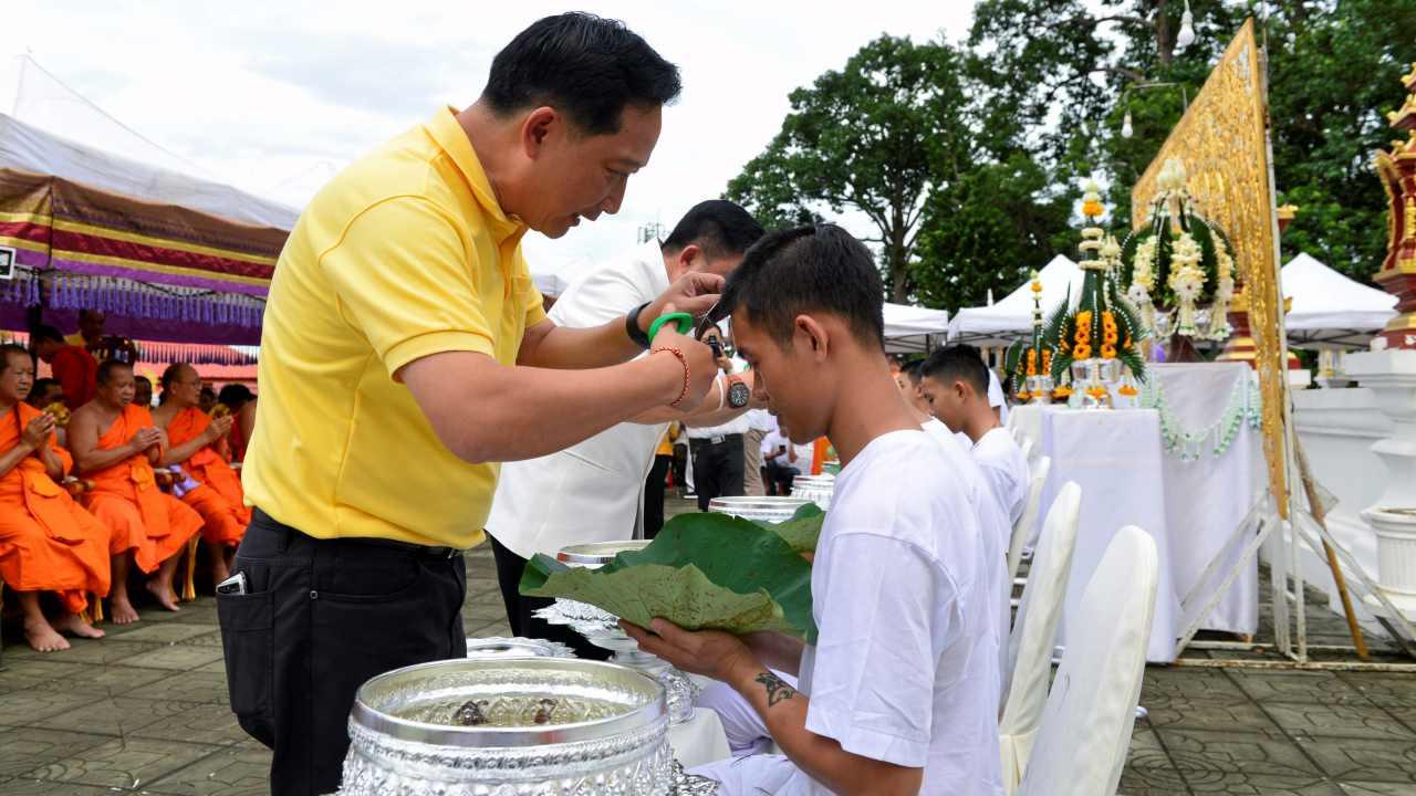 พ่อเมืองเชียงรายเป็นประธานร่วมปลงผมนาค 12 หมูป่า ทำพิธีฮ้องขวัญตามแบบประเพณีล้านนา เรียกขวัญกลับคืนมาให้ครบ หลังไปติดในถ้ำนานหลายวัน