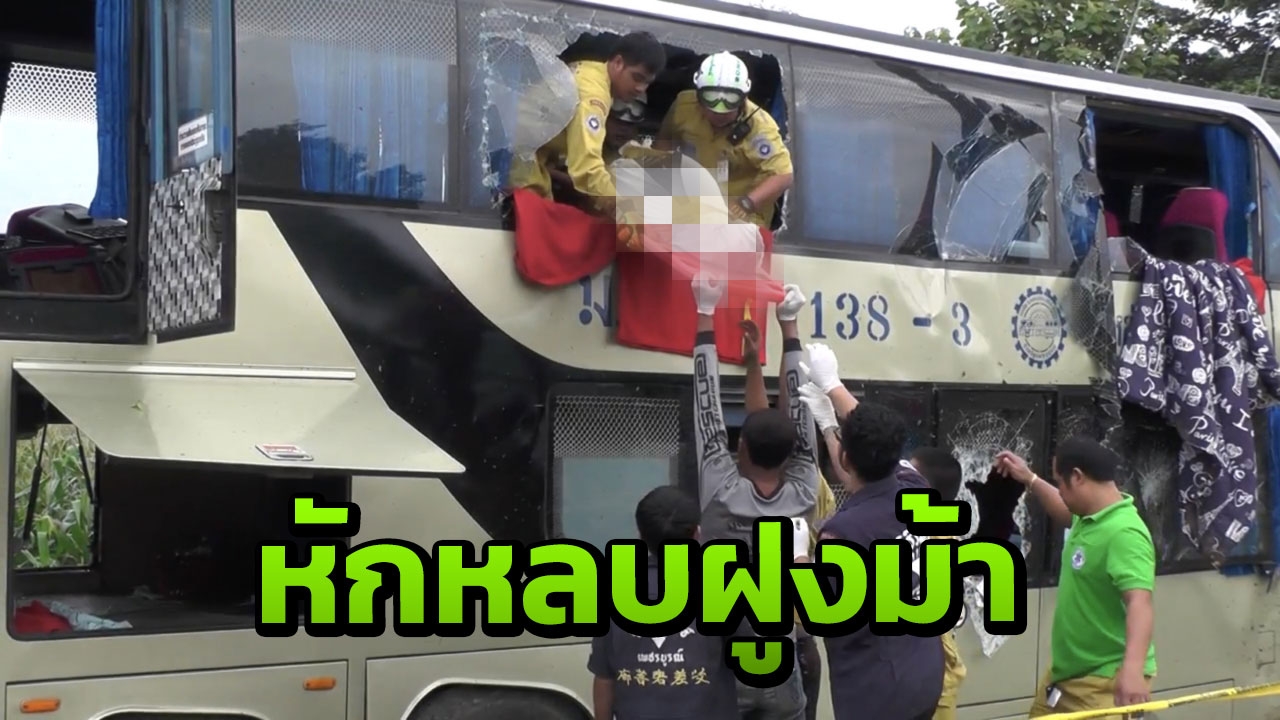 โชเฟอร์รถทัวร์ วิ่งระหว่าง สายหล่มสัก-ระยอง หักหลบฝูงม้า บนถนนบ้านสะแกงาม จ.เพชรบูรณ์ เป็นเหตุให้ผู้โดยสารเสียชีวิต 1 ราย ม้าถูกชนตาย 1 ตัว