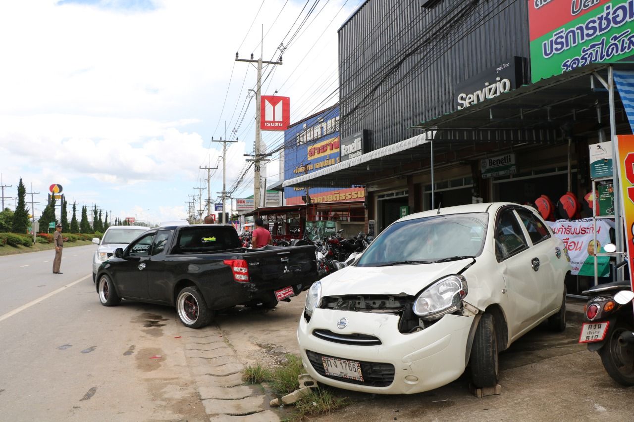 เมื่อเวลา 14.00 น. วันที่ 8 ส.ค. 2561 ร.ต.อ.เจตจำนงค์ นุกาศ พงส.สอบสวน สภ.บ้านดู่ อ.เมืองเชียงราย รับแจ้งอุบัติเหตุรถกระบะพุ่งชนรถบิ๊กไบค์ที่โชว์อยู่หน้าบริษัท เบเนลลี่ คีเวย์ (ประเทศไทย) จำกัด 539/1-2 หมู่ 2 ต.บ้านดู่ อ.เมือง บนถนนพหลโยธิน เลยแยกทางเข้าสนามบินแม่ฟ้าหลวงประมาณ 500 เมตร จึงรุดไปที่เกิดเหตุ พบรถกระบะมิตซูบิชิ ไทรทัน สีดำ ป้ายแดง ลักษณะแต่งซิ่ง จอดหน้าร้านแบบหันสวนกลับทิศทาง โดยท้ายกระบะด้านคนขับยุบ มีรถบิ๊กไบค์ ยี่ห้อ Benelli จำนวน 8 คันที่จอดรวมคันอื่นโชว์อยู่หน้าร้านล้มระเนระนาด และมีรถเก๋งยี่ห้อนิสสัน มาร์ช สีขาว ทะเบียน กง 1766 พะเยา ประตูหลังด้านคนขับและท้ายรถยุบพังเสียหายยับเยิน