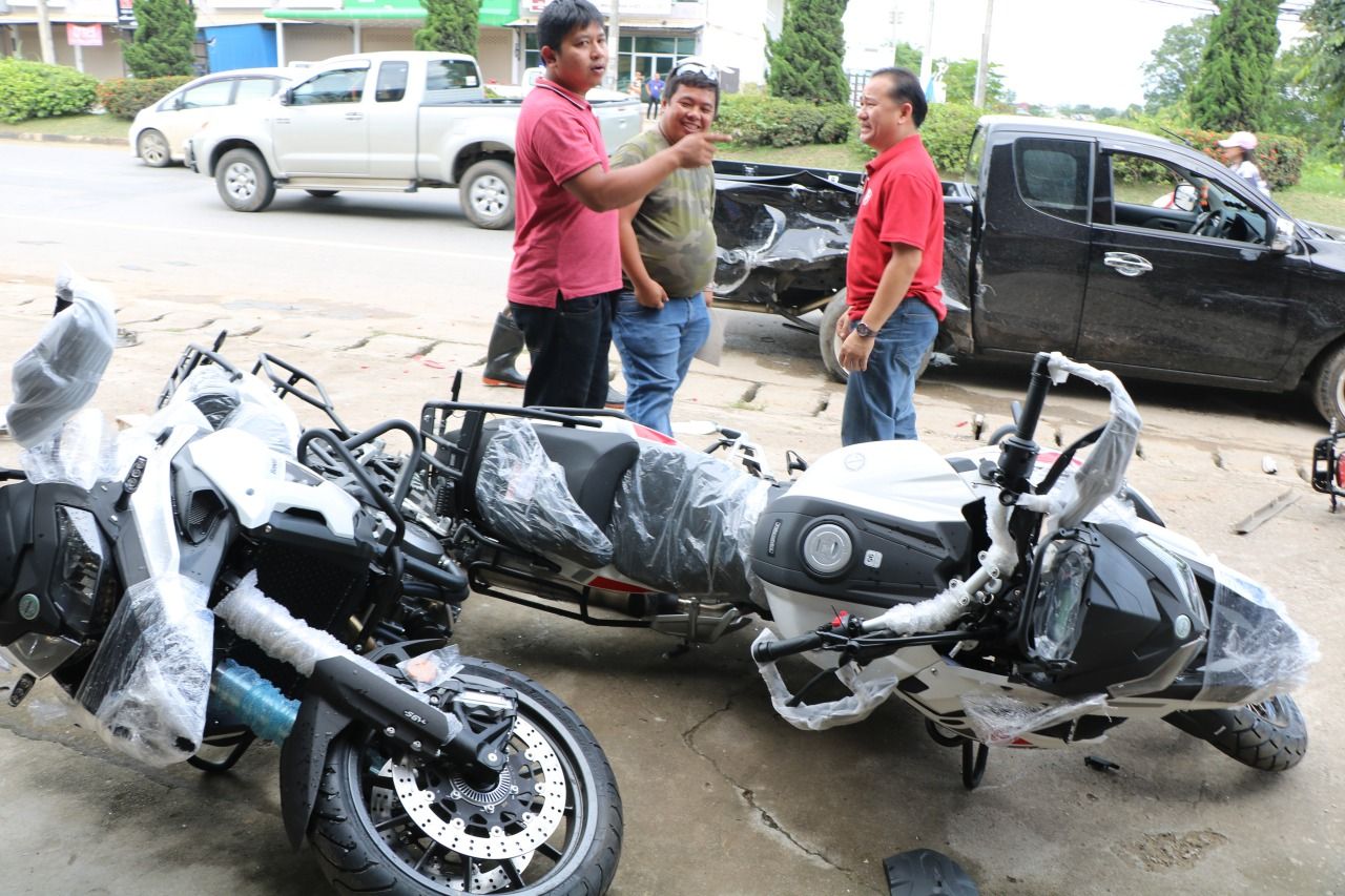 หนุ่มกู้ภัยแม่สายดวงซวย กลับจากประชุมสรุปบทเรียนหมูป่าฯ ขับกระบะป้ายแดงหักหลบรถเสียหลัก หมุนพุ่งกวาดบิ๊กไบค์ที่จอดหน้าโชว์รูมพังยับ 8 คัน กับรถเก๋งอีก 1 เสียหายร่วม 2 ล้าน...