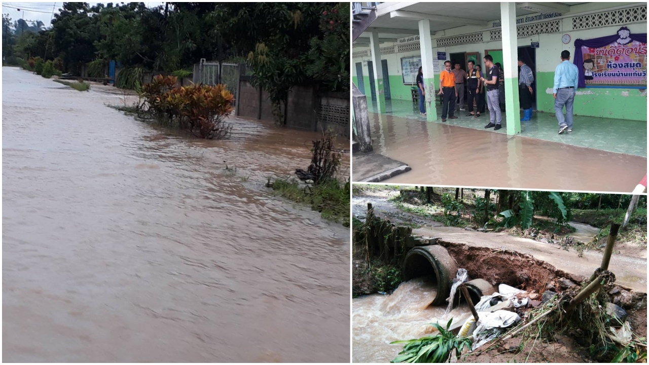 เมื่อวันที่ 15 ส.ค. นายทัศนัย สุธาพจน์ นายอำเภอเชียงของ จ.เชียงราย ตรวจสอบพื้นที่ ต.ห้วยซ้อ ได้รับความเสียหายจากน้ำท่วมกว่า 10 หมู่บ้าน โดยพื้นที่เกษตรเสียหาย 300 ไร่ และท่วมวัดและโรงเรียนบ้านแก่นวิทยา ทำให้ต้องประกาศหยุดเรียน 1 วัน โดยนายทัศนัย ระบุว่า เมื่อกลางดึกที่ผ่านมาเกิดฝนตกหนักต่อเนื่อง ทำให้น้ำล้นจากอ่างเก็บน้ำบ้านเนินสมบูรณ์ หมู่ 8 เข้าท่วมบ้านเรือนราษฎร ซึ่งได้มีการแจ้งเตือนให้ชาวบ้านขนย้ายทรัพย์สินขึ้นที่สูง โดยเหตุน้ำเอ่อล้นจากอ่างไม่เคยเกิดขึ้นตั้งแต่ปี 2538