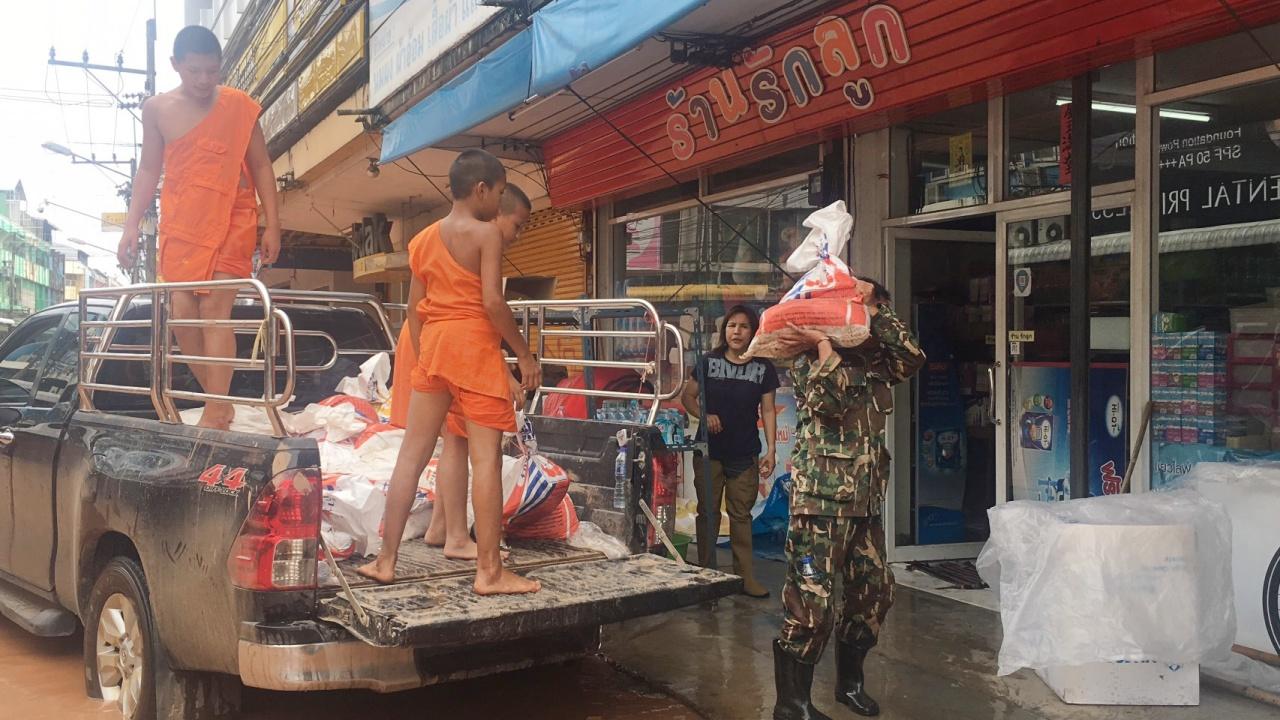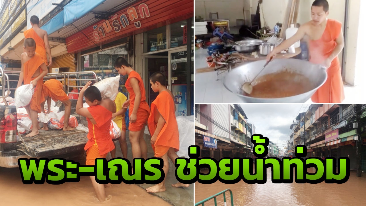 เจ้าหน้าที่ทหารร่วมกับพระ-เณร วัดช้างค้ำวรวิหาร จังหวัดน่าน นำกระสอบทรายวางกั้นไม่ให้น้ำไหลเข้าบ้านเรือนประชาชน พร้อมแจกอาหารผู้ประสบภัยที่บ้านถูกตัดขาดจากโลกภายนอก...