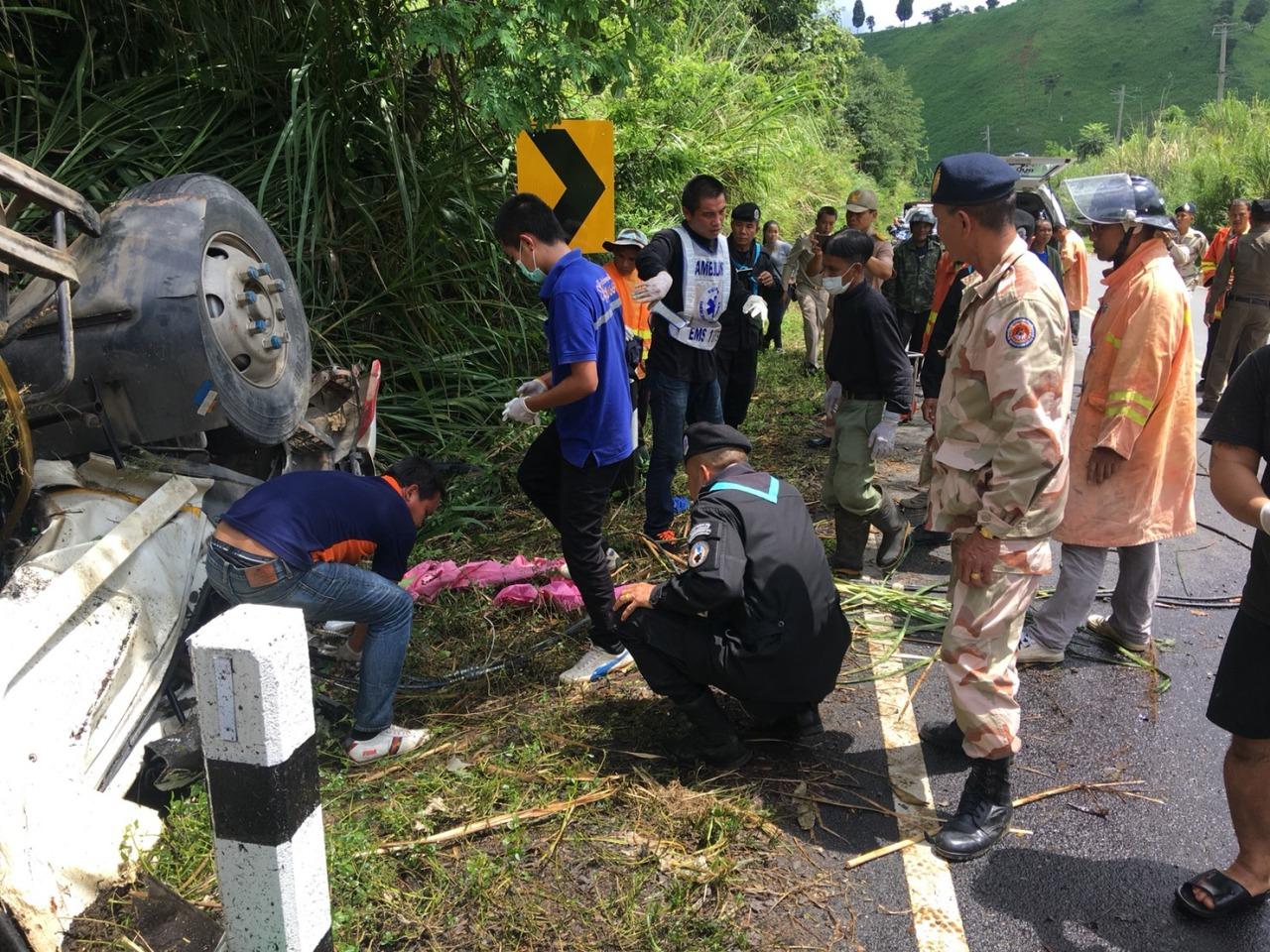 ที่เกิดเหตุพบรถบรรทุกพ่วง บริษัท ปัทมวัชร์การปิโตรเลียม จำกัด หมายเลขหัวลาก รย.71 -1893 ระยอง หมายเลขพ่วง รย.71 - 1899 ระยอง บรรทุกน้ำมัน ดีเซล จำนวน 41,000 ลิตร พลิกคว่ำข้างทางบนทางหลวง หมายเลข 101 บ.ใหม่ไชยธงรัตน์ ม.6 ต.ห้วยโก๋น อ.เฉลิมพระเกียรติ จ.น่าน โดยมี นายทองพันชั่ง เงินวิเศษ อายุ 52 ปี ชาวบ้าน หมู่ 1 ตำบลตะเคียนเตี้ย อำเภอบางละมุง จังหวัดชลบุรี เป็นคนขับเสียชีวิตคาที่ คาดว่ารถคันนี้มุ่งหน้าด่านชายแดนห้วยโก๋นเพื่อไปส่งเมืองหงสา สปป.ลาว ก่อนเสียหลักพลิกคว่ำ และ จนท.ทีมแพทย์ รพ.เฉลิมพระเกียรติ, กู้ชีพ กู้ภัย อบจ.น่าน, จนท.กู้ชีพ กู้ภัย อบต.ห้วยโก๋น จำนวนหนึ่งได้เร่งช่วยกันใช้เครื่องตัดถ่างให้ความช่วยเหลืออย่างเต็มที่