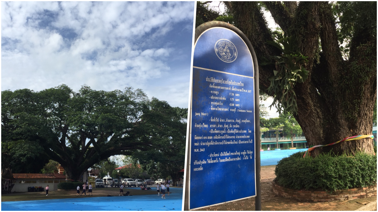 พะเยา ชมความงาม ต้นจามจุรียักษ์ ขนาด 19 คนโอบ เกิดขึ้นเองตามธรรมชาติ เมื่อปี พ.ศ.2437 มีความสูง 17.50 เมตร เส้นรอบลำต้น 5.75 เมตร อายุ 124 ปี สวยที่สุดในไทย