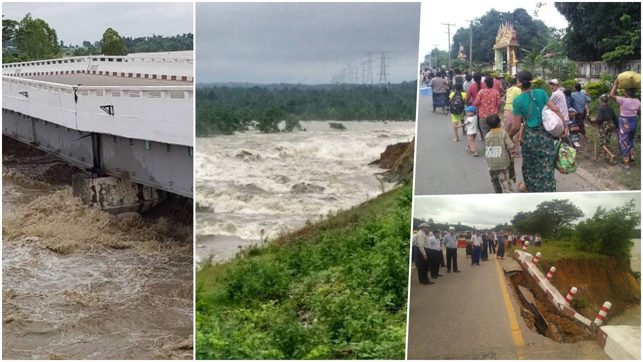 ล่าสุด ปริมาณน้ำแม่น้ำสาละวินสูงมากขึ้น วัดได้กว่า 15 เมตร ได้เอ่อท่วมพัดคอสะพานปูนคู่ ข้ามแม่น้ำอิรวดี ทางภาคเหนือตอนล่าง แขวงอิรวดี เชื่อมกับแขวงบาโก โดยน้ำได้ซัดช่วงกลางรอยต่อสะพาน จนแตกร้าว โก่งงอ หลายจุด และเกิดอาการโก่งขึ้นอย่างเห็นได้ชัด หากน้ำไม่ลดมีโอกาสที่จะซัดสะพานพังขาดจากกัน