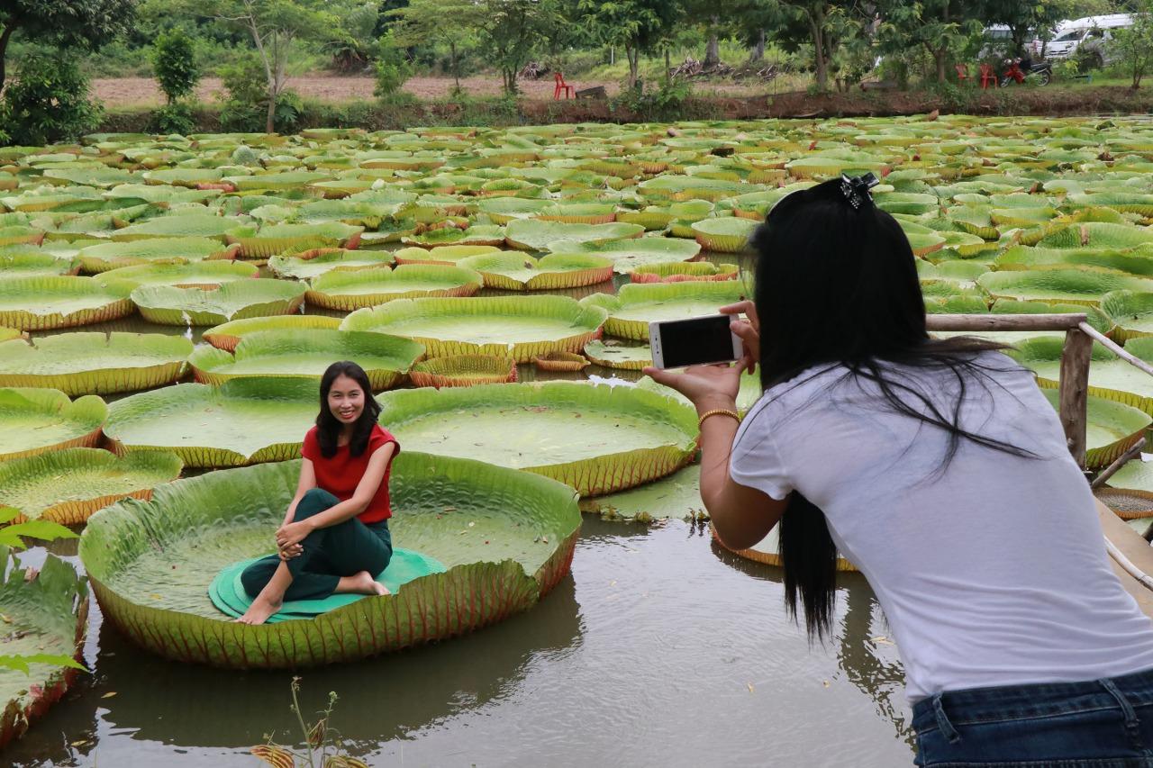 เมื่อวันที่ 30 ส.ค.2561 นายธรรมรงค์ สิริพัฒนา อายุ 55 ปี เจ้าของสวนบัวอมรรัตน์ หมู่ 10 ต.วัดจันทร์ อ.เมือง จ.พิษณุโลก เปิดเผยว่า ปีที่ผ่านมามีนักท่องเที่ยวมาเรียนรู้เรื่องเกษตรผสมผสานที่สวนของตนจำนวนมาก โดยเฉพาะบัวพันธุ์วิคตอเรีย หรือบัวกระด้งยักษ์ ส่วนใหญ่จะพากันลงไปยืนบนใบบัวที่ลอยอยู่บนผิวน้ำภายในสระ เพื่อถ่ายรูปไว้เป็นที่ระลึกและนำไปโพสต์ลงในโซเชียลมีเดีย จนสร้างความฮือฮาเป็นอย่างมาก เพราะบัวชนิดนี้สามารถรองรับน้ำหนักของคนที่ลงไปยืนอยู่ได้สบาย ๆ โดยตนคิดค่าเข้าชมคนละ 10 บาทเท่านั้น ที่ผ่านมาตนต้องปิดให้บริการมาเป็นเวลา 2 เดือนกว่าแล้ว เนื่องจากเข้าสู่ฤดูฝนทำให้ลมพัดใบบัวฉีกขาดเสียหาย แต่ก็มีนักท่องเที่ยวบางรายเข้ามาเที่ยวชมที่สวนอย่างต่อเนื่อง แม้ว่าจะยังไม่สามารถลงไปยืนบนใบบัวเพื่อถ่ายรูปได้