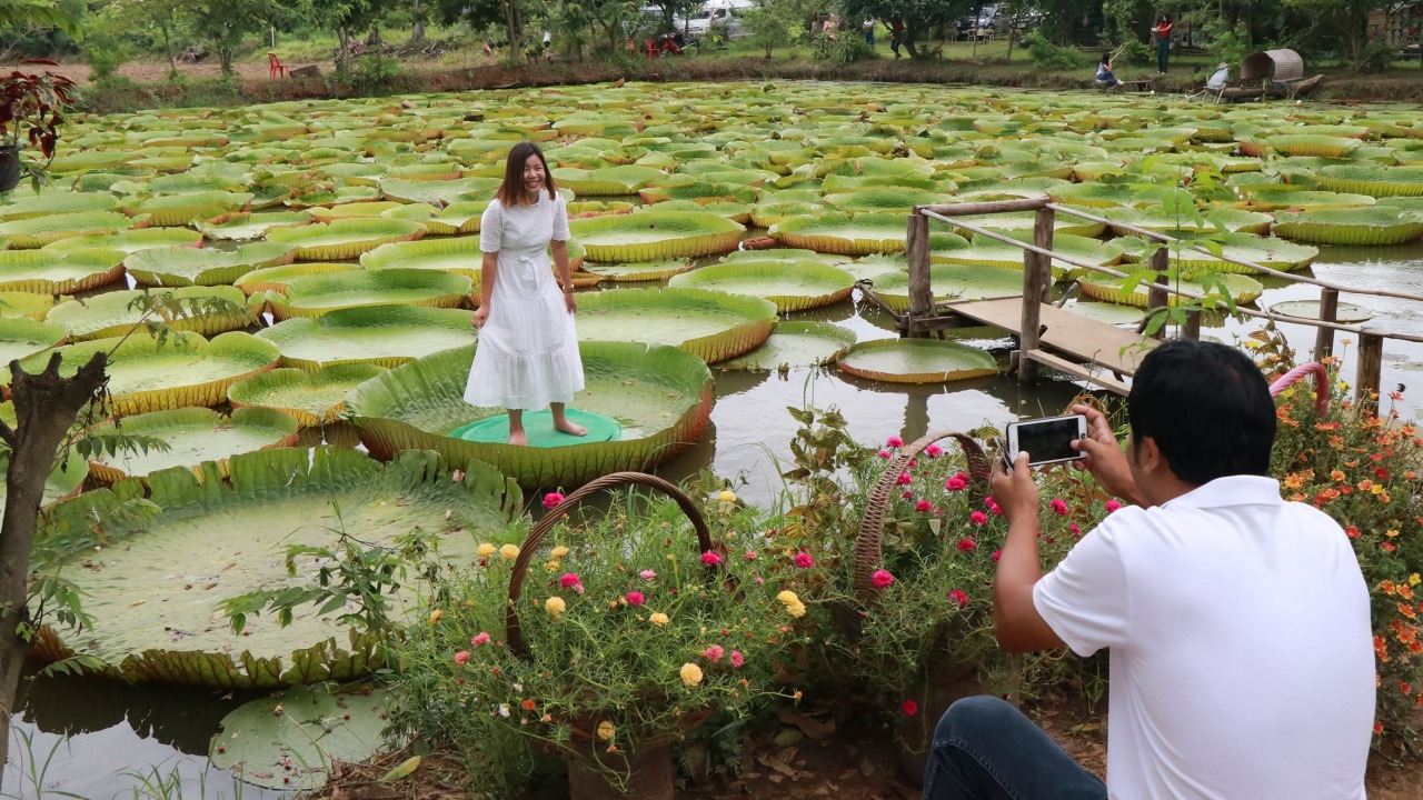 เจ้าของสวนบัวอมรรัตน์ เผยให้นักท่องเที่ยวลงไปยืนบนใบบัวเพื่อถ่ายรูปได้แล้ว โดยใบบัวห้ามขาด และ ต้องมีแผ่นไม้กระดานรองรับเพื่อกระจายน้ำหนักตัวไว้ ขอให้ยืนหรือนั่งนิ่งๆ จะไม่ไม่ตกน้ำ...