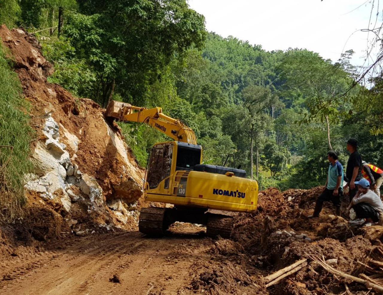 คืบหน้า กรณีหินภูเขาขนาดใหญ่น้ำหนักกว่า 70 ตัน ขวางถนน และ ดินโคลนสไลด์เลื่อนไหล ปิดทับเส้นทาง กม.ที่ 40 ระหว่าง บ้านอุมโล๊ะ-บ้านสบโขง ต.แม่สวด อ.สบเมย จ.แม่ฮ่องสอน สูงกว่า 10 เมตร ระยะทางยาวกว่า 15 เมตร ทำให้รถยนต์ไม่สามารถสัญจรผ่านไปมาได้ ตั้งแต่เย็นวันที่ 3 ก.ย. ที่ผ่านมานั้น