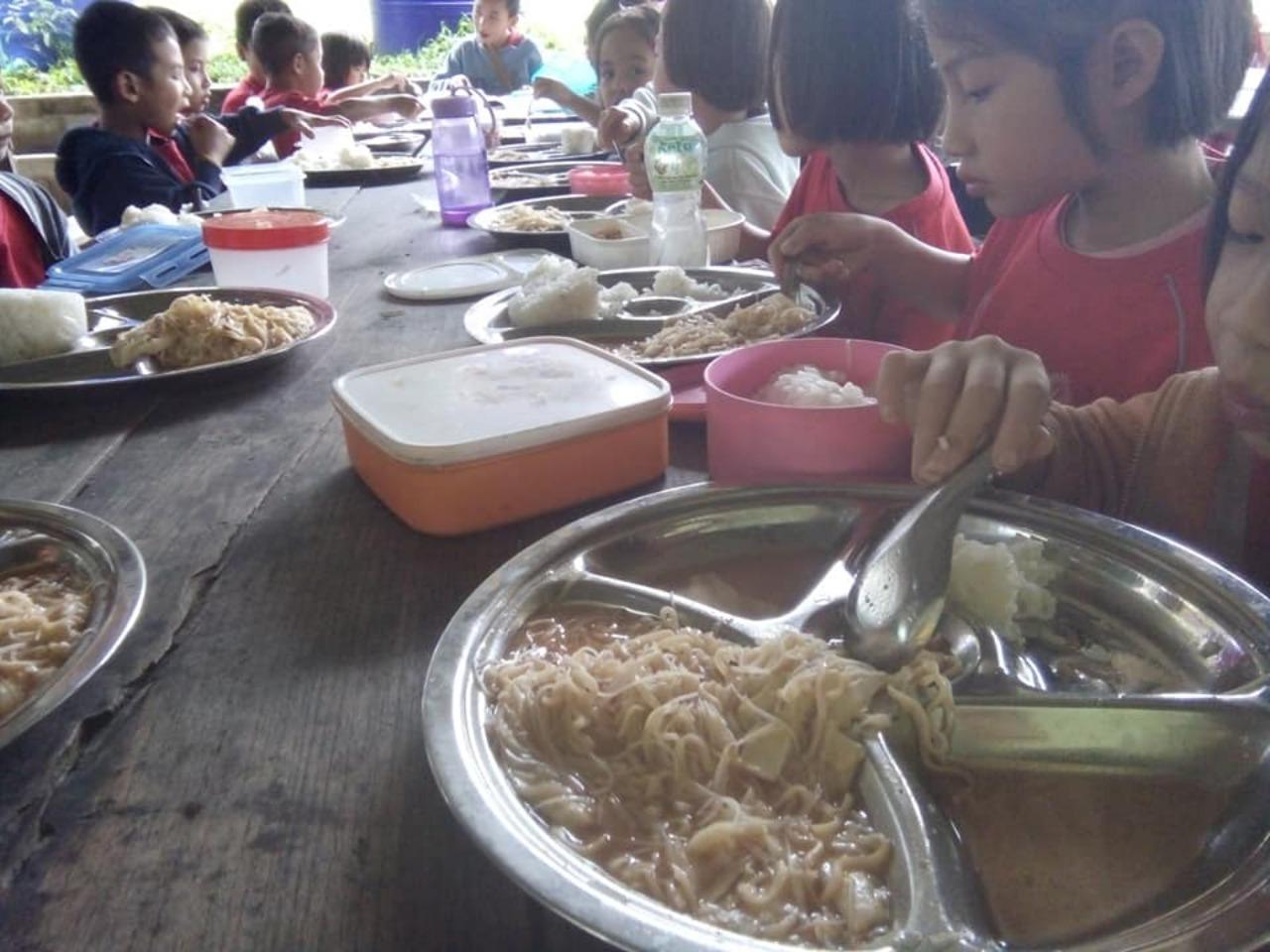 อย่างไรก็ตาม ครูผู้หญิงและนักเรียนเพียงหยิบมือ ที่สามารถขนเสบียงให้เด็กได้ น้องๆ ครู พากันเดินทางเท้าจากหมู่ 5 บ้านปางส่างคำ บ้านปูแป้ ต.พะวอ เพื่อแบกอาหารกลับไป ถึงแม้จะเดินทางไกลก็ตาม.