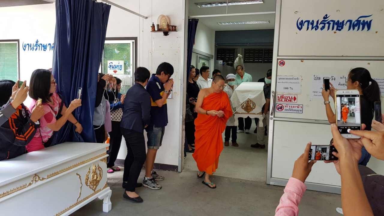 บรรยากาศหน้าห้องรักษาศพ เต็มไปด้วยกองทัพสื่อมวลชนที่มาปักหลักรอทำข่าว และแฟนคลับของโอ วรุฒ ที่มาร่วมยืนไว้อาลัยส่งร่าง โอ ไปยังวัดพระสิงห์ฯ บางคนถึงกับร่ำไห้ด้วยความอาลัย