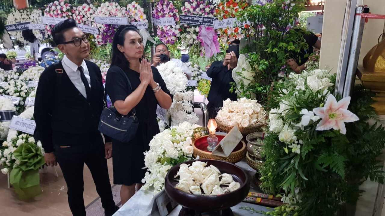 โดยมี นายแรม วรธรรม บิดา พร้อมครอบครัววรธรรม นีโน่ เมทนี บุรณศิริ, จินตหรา สุขพัฒน์, เกิร์ก ชิลเลอร์, อ้น ศรีพรรณ, กมล ศิริธรานนท์, ผู้จัดละคร ไก่ วรายุฑ, กอบสุข จารุจินดา , ก้อย ทาริกา และเพื่อนศิลปิน เข้าแถวร่วมรอรับพวงมาลา