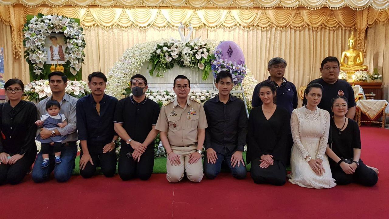 ขณะที่ ศิลปินนักแสดงและครอบครัวถ่ายรูปหน้าโลงศพโอ วรุฒ ครั้งสุดท้ายที่วัดพระสิงห์ฯ ก่อนเคลื่อนย้ายศพ.