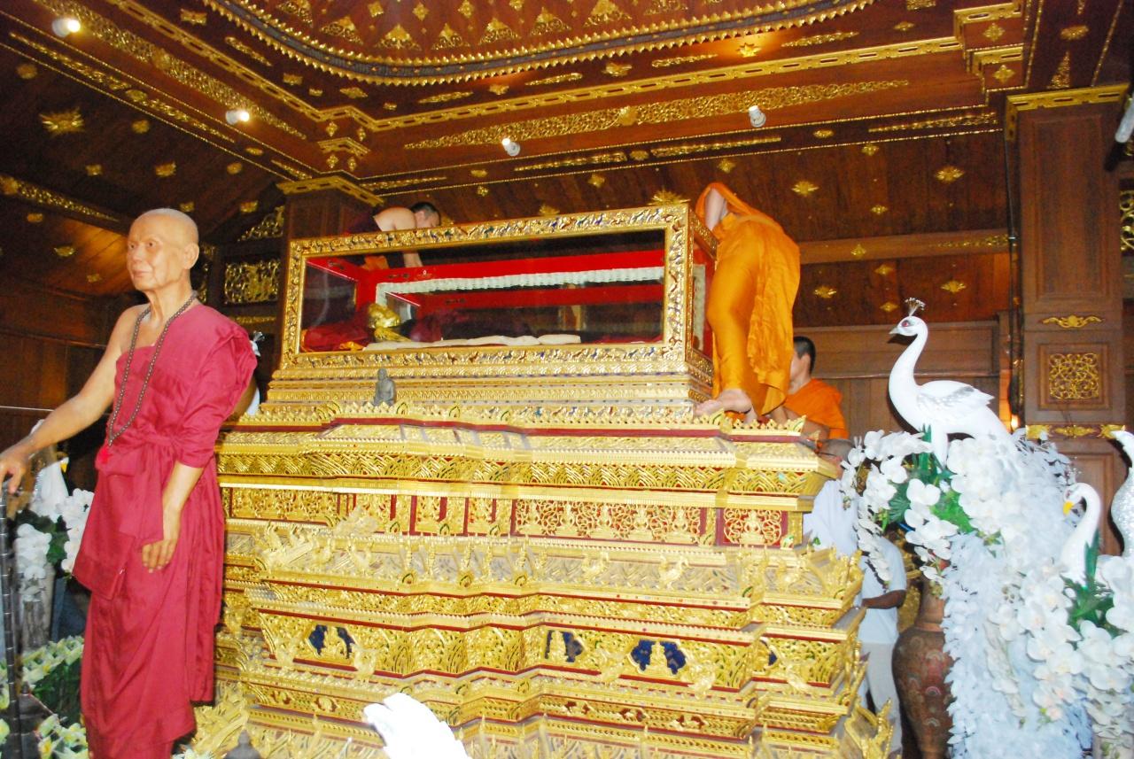 ทางลูกศิษย์จึงได้นำสรีระร่างลงจากโลงแก้ว บนกุฏิไม้สักทองหลังใหญ่ เพื่อให้ศรัทธาสาธุชนได้กราบไหว้