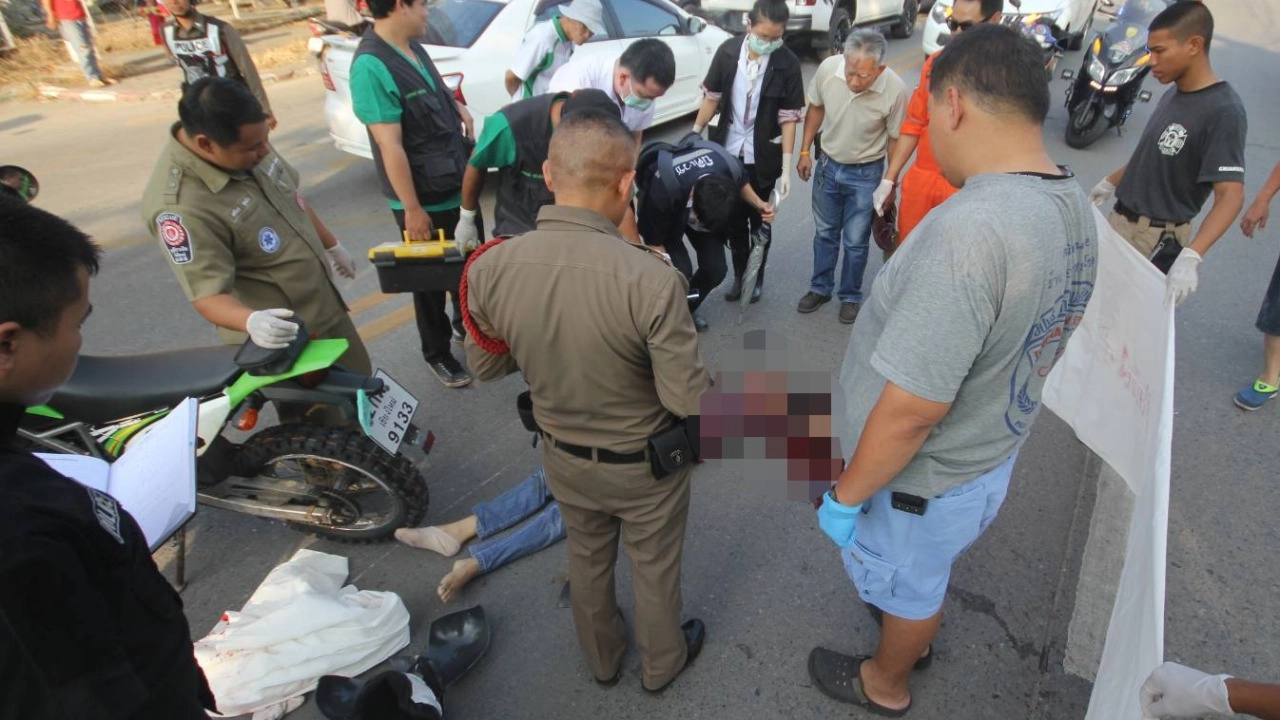 สาวใหญ่ที่เชียงใหม่ ขี่รถ จยย.วิบากกลับรถกลางถนน แต่แฉลบล้มถูกสองแถวสีเหลืองวิ่งมาเร็วทับซ้ำตายคาที่ตรงทางโค้งก่อนถึงหน้าร้านที่นอนปีนัง แล้วหลบหนี ตำรวจช้างเผือกเร่งตามคนขับมาดำเนินคดี...