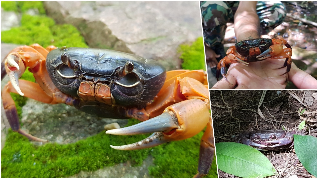 ปลายฝนต้นหนาว "ปูสองแคว" ปูป่าหายาก สีสันสวยงาม โผล่ออกจากรู ให้นักท่องเที่ยวได้ยลโฉม เฉพาะที่พิษณุโลกเท่านั้น ในเขตห้ามล่าสัตว์ป่าเขาน้อย-เขาประดู่...
