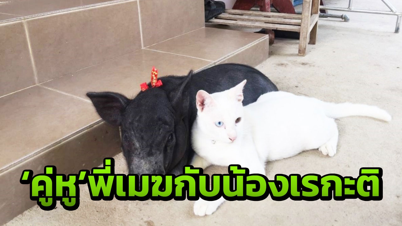รักต่างสายพันธุ์! 'พี่เมฆ' แมวไทยพันธุ์ขาวมณี ไปไหน น้องหมูแม้ว 'เรกะติ' ขอไปด้วย รักกันเหมือนพี่น้อง ตามคลอเคลียไม่ห่าง แปลก ลูกหมูกินแต่อาหารแมวกับนม ไม่สนใจอาหารอื่น