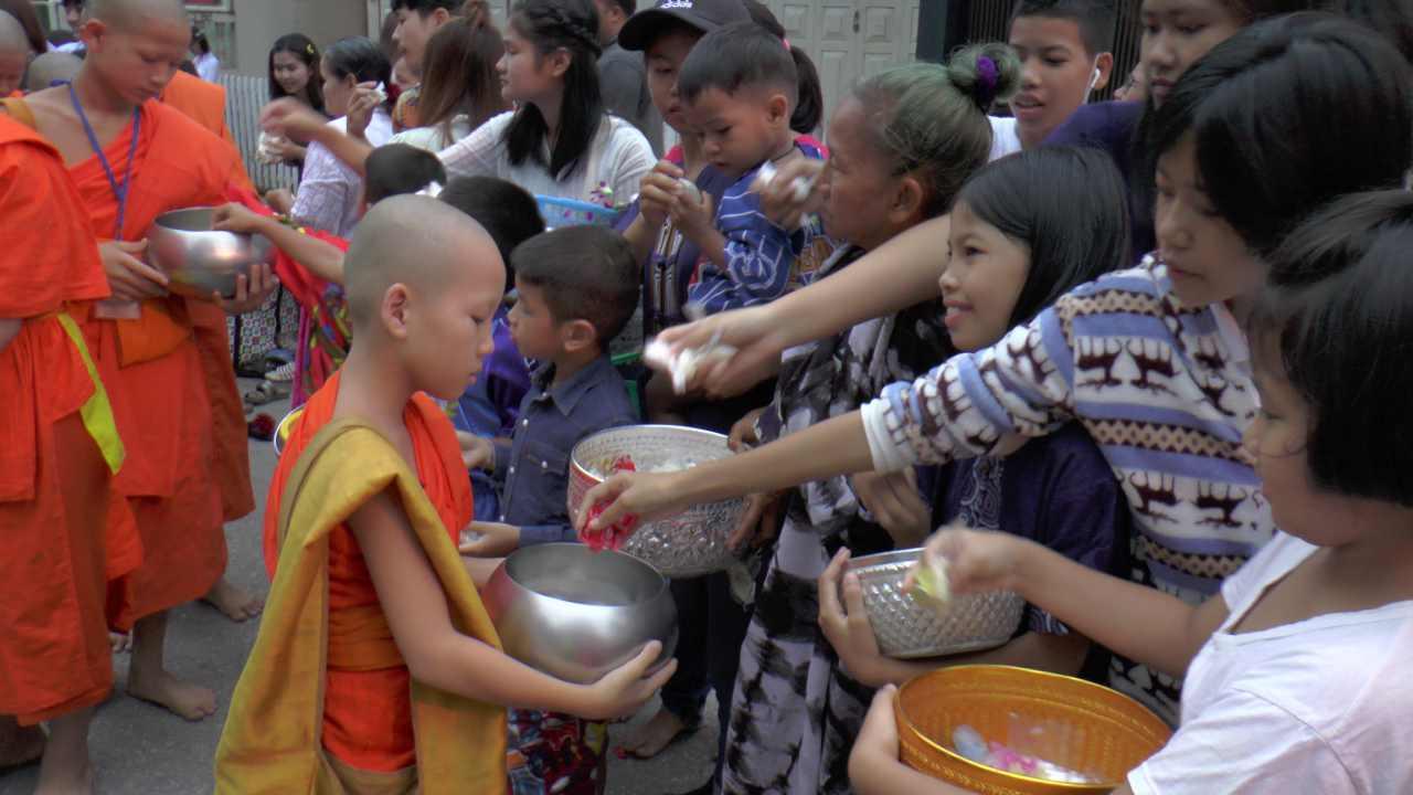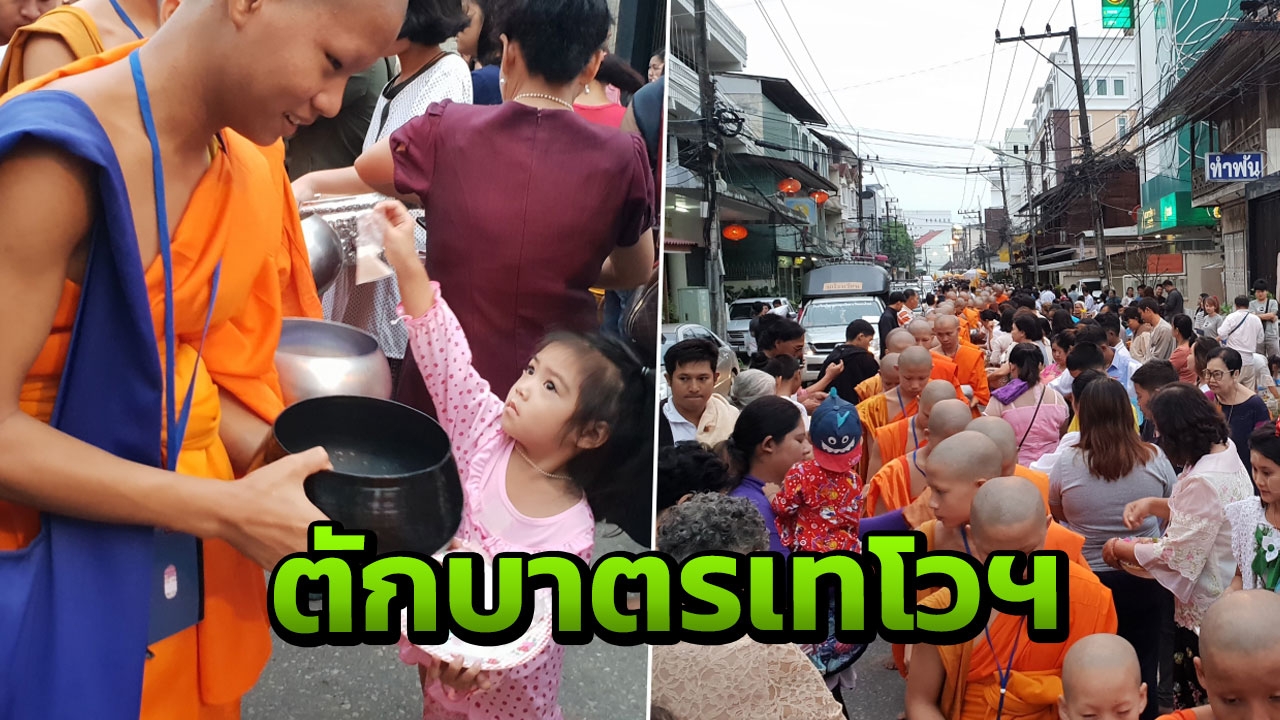 ชาวพุทธ ทั้งไทย เมียนมา จีน อินเดีย ที่แม่สอด พร้อมใจออกมาทำบุญ ตักบาตร 2 แผ่นดิน ‘เทโวโรหณะ’ พระสงฆ์ 2 ประเทศ 550 รูป เดินเป็นแถวยาวเหยียด ใช้เวลาตักบาตรร่วม 3 ชั่วโมง
