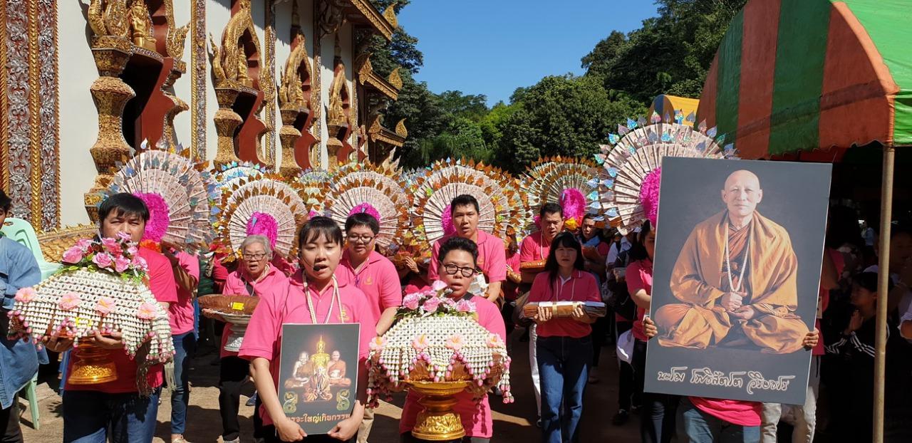 กลุ่มคณะศิษย์มีครู หลวงปู่ดู่หลวงตาม้านับพันคนจากทั่วประเทศ มายังวัดถ้ำเมืองนะ อ.เชียงดาว ร่วมเป็นเจ้าภาพถวายกฐิน แด่หลวงตาม้า โดยแห่ขบวนนกยูง 401 ตัว แต่งด้วยธนบัตรมูลค่ากว่า 12.3 ล้านบาท...