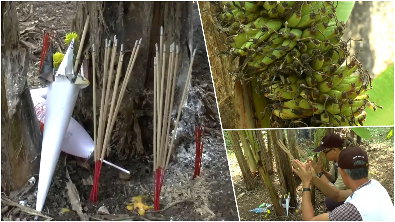 ทั้งนี้ชาวบ้านต่างนำดอกไม้ธูปเทียน มาไหว้ขอโชค ตีเลขเด็ดจากการนับหวี นับลูก และบางรายใช้แป้งลูบบริเวณลำต้น โดยต้นกล้วยประหลาดดังกล่าว มีความแตกต่างจากต้นกล้วยต้นอื่นภายในสวน ซึ่งปลูกเป็นจำนวนมาก ทำให้ผู้คนหลั่งไหลมาขอโชคลาภ ยิ่งช่วงใกล้วันหวยออก.