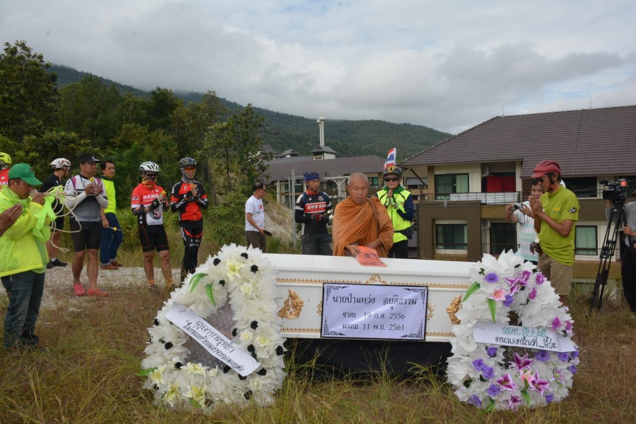 หลังเสร็จพิธีเผาโลงแล้ว นายธีระศักดิ์ รูปสุวรรณ ผู้ประสานงานเครือข่ายของคืนพื้นที่ป่าดอยสุเทพ เปิดเผยว่า วันนี้เป็นการปั่นทวงผืนป่าเพื่อที่จะบอกกับทางรัฐบาลว่าคนเชียงใหม่ไม่ได้นิ่งนอนใจกับทางทวงผืนป่าแหว่ง ก็อยากจะให้มีการแก้ไขปัญหา นี่คือปัญหาที่ยืดเยื้อมาก เราอยากวิงวอนรัฐมนตรีและนายกรัฐมนตรีให้จัดการปัญหานี้ยุติโดยเร็ว ทางเครือข่ายรู้สึกผิดหวังที่ให้ฟังคนนอกที่จะไม่ให้รื้อ แต่คนเชียงใหม่เห็นบ้านป่าแหว่งเต็มตาอยู่ เราว่าเป็นบรรทัดฐานที่ผิดไม่ว่าด้านคุณธรรมและจริยธรรม เราไม่ต้องการเห็นสภาพแบบนี้ เพราะมันขึดบ้านขึดเมือง เราต้องต้องการป่าคืนมา เราต้องไม่การชนะตุลาการใดๆทั้งสิ้น เราขอให้พวกเราได้เข้าไปฟื้นฟูป่าปลูกป่า แต่ผู้ที่พักอยู่ในอาคาร 9 หลังก็ยังไม่ยอมย้ายออกมาเลย