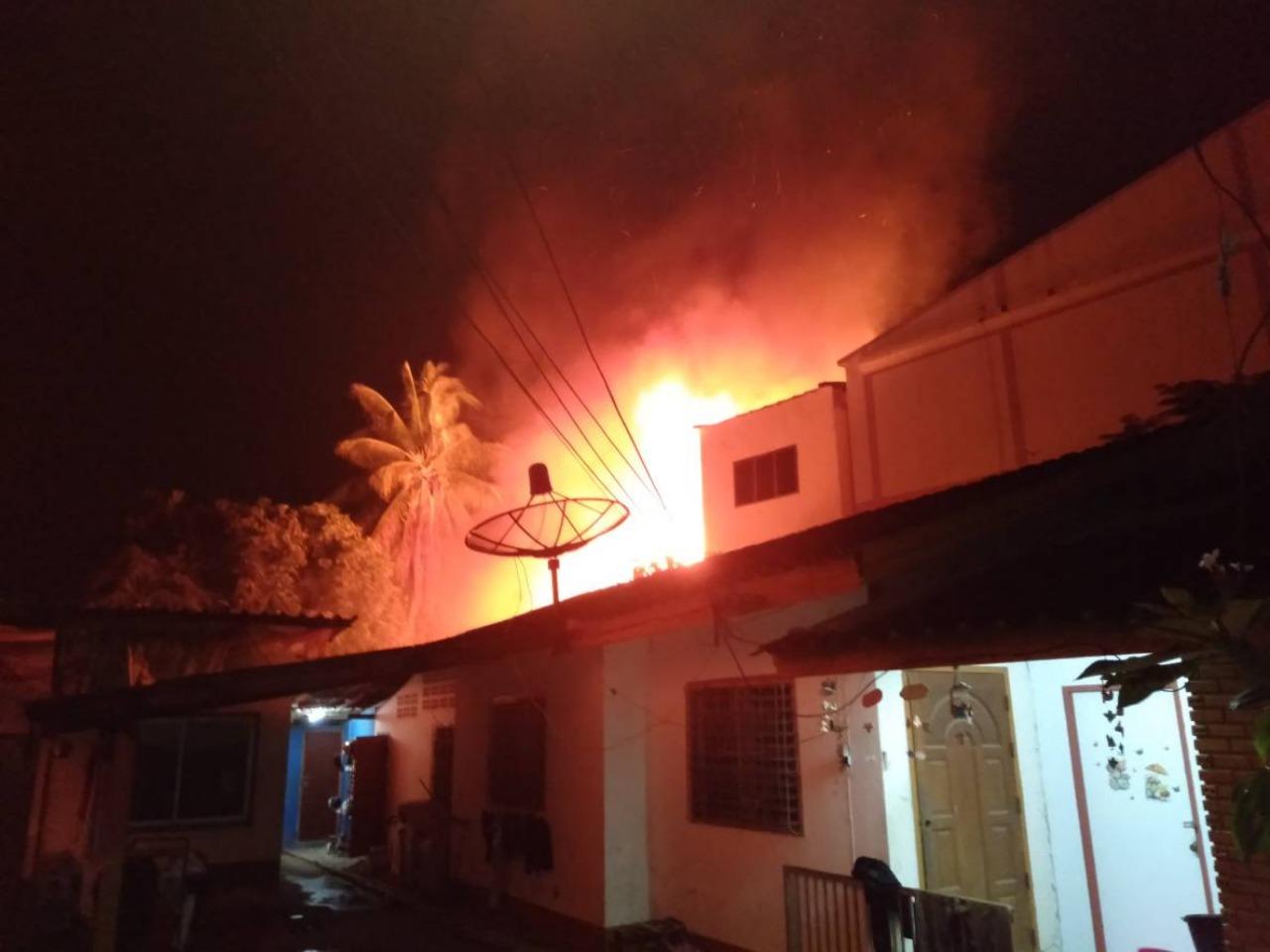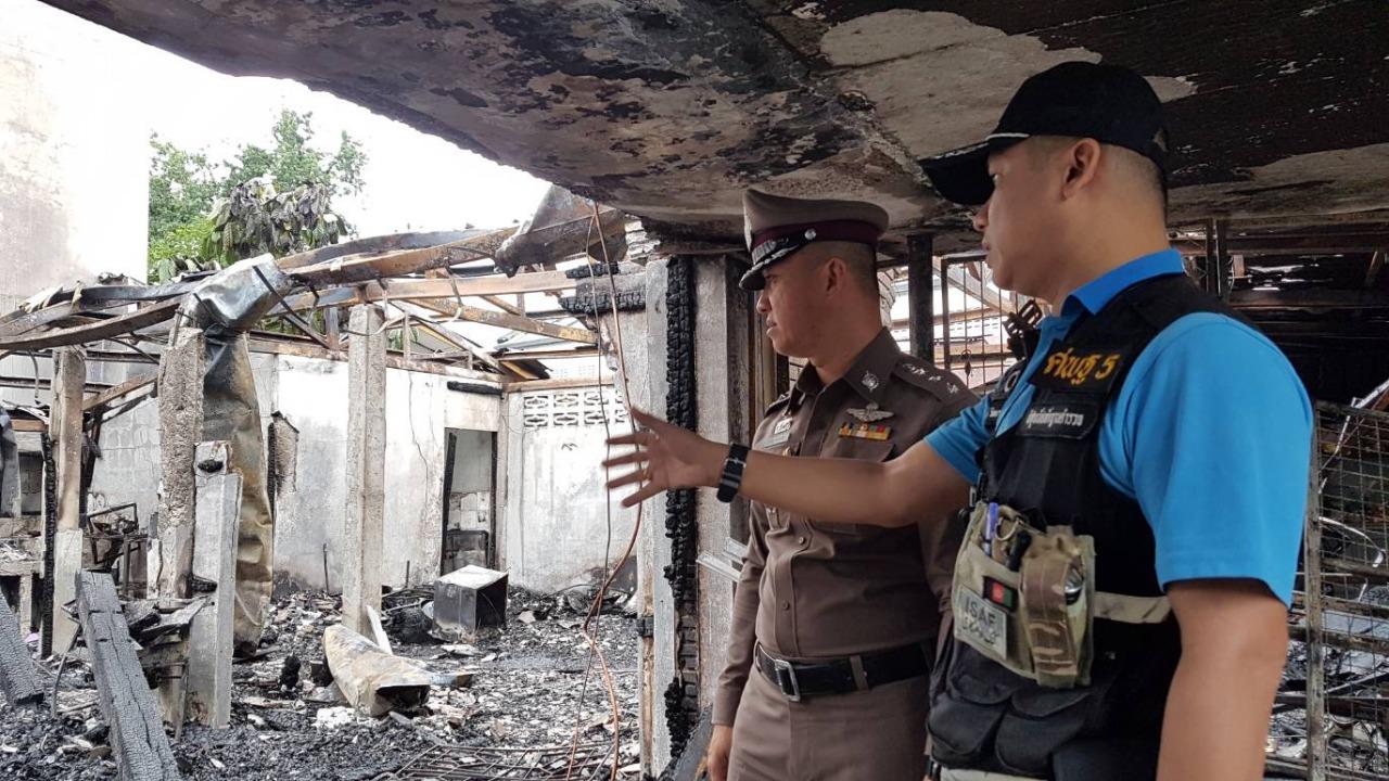เมื่อไปถึงที่เกิดเหตุพบว่าเพลิงกำลังลุกไหม้บ้าน 2 ชั้น แบบครึ่งปูนครึ่งไม้ อย่างรวดเร็ว และมีคนติดอยู่ในห้องนอนชั้น 2 ของบ้าน ทางเจ้าหน้าที่ไม่สามารถฝ่าเปลวเพลิงเข้าไปช่วยเหลือได้ จึงระดมฉีดน้ำสกัดเพลิงไม่ให้ลุกลามไปยังบ้านข้างเคียง และควบคุมเพลิงให้สงบใช้เวลาร่วม 2 ชม. ภายหลังเพลิงสงบ ได้เข้าเคลียร์พื้นที่บ้านพบศพ 3 พ่อแม่ลูก นอนกอดกันตายในซากกองเพลิงดำเป็นตอตะโก ทราบชื่อว่า นายบัณฑิต ทองคำ อายุ 29 ปี นางพานิดา ทองคำ อายุ 28 ปี และ ด.ช.นวพล ทองคำ อายุ 2 ปี