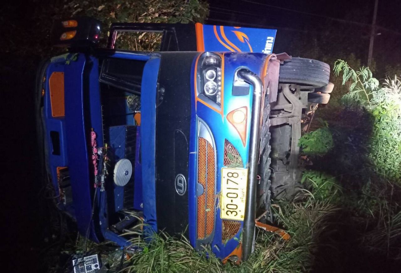 รถบัสโดยสารขนญาติเจ้าบ่าวจากสุรินทร์ไปร่วมงานแต่งที่เพชรบูรณ์ เกิดเสียหลักพลิกคว่ำลงข้างทางที่ถนนนครสวรรค์ – ชัยภูมิ พื้นที่ อ.วิเชียรบุรี ทำให้มีผู้บาดเจ็บ 38 คน คาดคนขับไม่ชำนาญเส้นทาง...