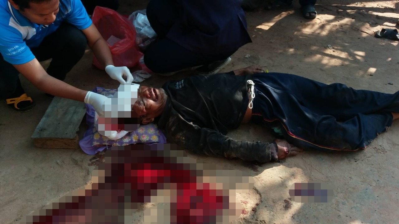 เมื่อเวลา 09.00 น. วันที่ 22 พ.ย.2561 ศูนย์วิทยุกู้ภัยพิษณุโลก มูลนิธิประสาทบุญสถาน รับแจ้งจากศูนย์วิทยุ 191 พิษณุโลก ว่ามีผู้ได้รับบาดเจ็บสาเหตุยางระเบิดใส่ศีรษะที่บ้านหลังหนึ่ง ในพื้นที่หมู่ 15 บ้านท่าข้าม ต.วังนกแอ่น อ.วังทอง จ.พิษณุโลก ไปตรวจสอบพบผู้บาดเจ็บนอนหมดสติจมกองเลือดอยู่ข้างบ้านพัก ใกล้กับรถไถนาเดินตาม มีบาดแผลฉกรรจ์ที่ศีรษะ กะโหลกด้านขวาแตก และแขนข้างขวาหัก จึงปฐมพยาบาลเบื้องต้นพร้อมวิทยุขอให้หน่วยกู้ชีพโรงพยาบาลวังทอง มารับตัวผู้บาดเจ็บไปรักษา แต่แพทย์ให้ส่งตัวรักษาเร่งด่วนที่โรงพยาบาลพุทธชินราช อ.เมืองพิษณุโลก เนื่องจากมีอาการสาหัส