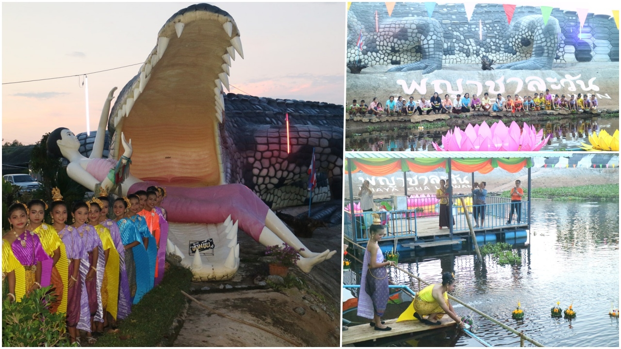 เมื่อเวลา 18.00 น. วันที่ 22 พ.ย. บริเวณหน้ารูปปั้นพญาชาละวัน คาบตะเภาแก้ว นอนผงาดขวางคลองน้ำ ขนาดความยาว 47 เมตร กว้าง 5.5 เมตร และความสูง 5.5 เมตร ซึ่งตั้งอยู่ริมคลองคู้ หน้าวัดคลองคู้ หมู่ 6 ต.ท่าหลวง อ.เมือง จ.พิจิตร โดยพระครูพิลาศธรรมกิตติ์ เจ้าอาวาสวัดคลองคู้ ร่วมกับนายนำพล เสมาทอง นายก อบต.ท่าหลวง ร่วมจัดงานประเพณีลอยกระทง ซึ่งได้มีประชาชนและนักท่องเที่ยวนำกระทงใบตองมาลอยกระทงในคลองคู้ เพื่อขอขมาแม่พระคงคาและอนุรักษ์วัฒนธรรมประเพณีที่ดีงามของไทย พร้อมทั้งถ่ายรูปกับรูปปั้นพญาชาละวัน