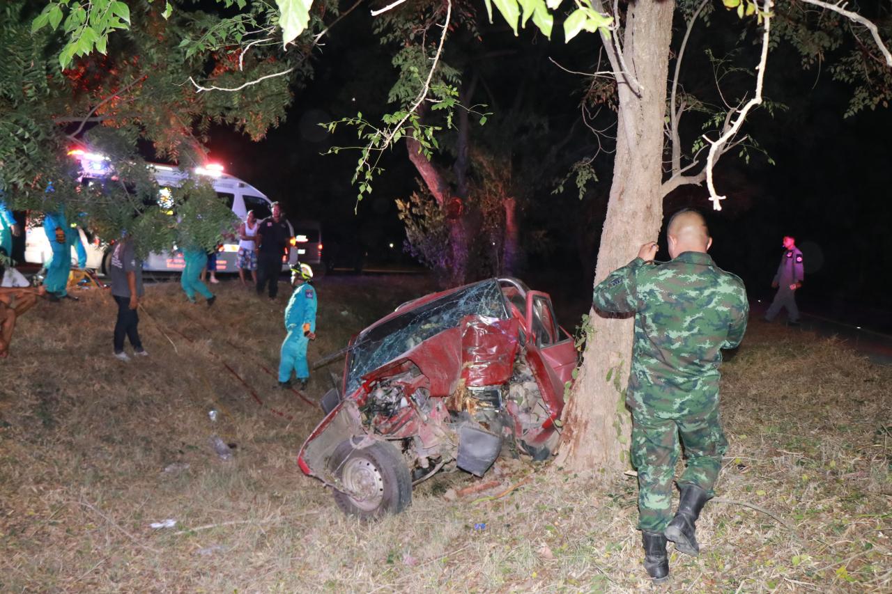 เมื่อเวลา 19.00 น. วันที่ 6 ธ.ค.61 ร.ต.อ.อนุวัฒน์ วัฒนกรการุณย์ รอง สว.(สอบสวน) สภ.เมืองพิษณุโลก รับแจ้งมีอุบัติเหตุรถยนต์กระบะตกถนนชนต้นไม้ในร่องเกาะกลางถนนเลี่ยงเมืองบ้านกร่าง – สามแยกเอ๊กซเรย์ ก่อนถึงประตู 1 มหาวิทายาลัยราชภัฏพิบูลสงคราม หมู่ 5 ต.พลายชุมพล ไปตรวจสอบพร้อมด้วยแพทย์เวร รพ.มหาวิทยาลัยนเรศวร และเจ้าหน้าที่กู้ภัยสมาคมมิตรภาพมงคลธรรม พบรถยนต์กระบะ นิสสัน สีแดง หมายเลขทะเบียน ปต 2092 พิษณุโลก สภาพด้านหน้าชนกับต้นกาซะลองบริเวณเกาะกลางถนน สภาพหน้ารถพังยับเยิน มีคนขับเสียชีวิตติดอยู่ภายใน เจ้าหน้าที่กู้ภัยจึงใช้อุปกรณ์ตัดถ่างนำร่างผู้เสียชีวิตออกมาให้ตำรวจและแพทย์ทำการชันสูตรเบื้องต้น ทราบชื่อผู้เสียชีวิตคือ นายบุญส่ง กันจู อายุ 58 ปี บ้านเลขที่ 219 หมู่ ต.ท่างาม อ.วัดโบสถ์ จ.พิษณุโลก สภาพศพสวมเสื้อแขนยาวสีดำ และมีชุดอาสาตำรวจบ้านอยู่ในรถ โดยไม่พบเอกสารหลักฐานใด