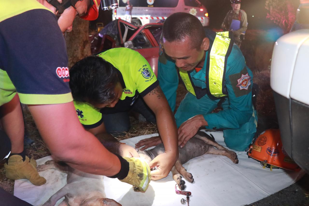 ร่วมชีวิต!! อาสาตำรวจบ้านซิ่งกระบะเพื่อกำลังจะนำลูกสุนัขให้ญาติเกิดวูบและหลับใน รถพุ่งชนต้นไม้เกาะกลางถนนสายเลี่ยงเมืองพิษณุโลก เสียชีวิตพร้อมลูกสุนัข 2 ตัวที่ใส่กรงไว้ด้านหน้ารถ โดยเลขไมล์รถยังค้างความเร็วอยู่ที่ 110 กม./ชม.