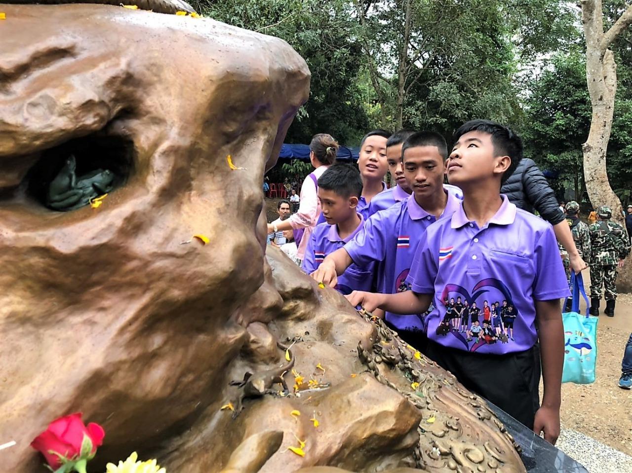รูปหล่อหุ่นจ่าแซม วีรบุรุษถ้ำหลวง เดินทางถึง จ.เชียงราย โดยตั้งไว้ที่ฐานกลม หน้าศาลาอนุสรณ์ ตรงข้ามปากทางเข้าถ้ำหลวง ด้านภรรยาจ่าแซมบอก หุ่นเหมือนตัวจริงมากดีใจชาวเชียงรายต้อนรับอบอุ่น...