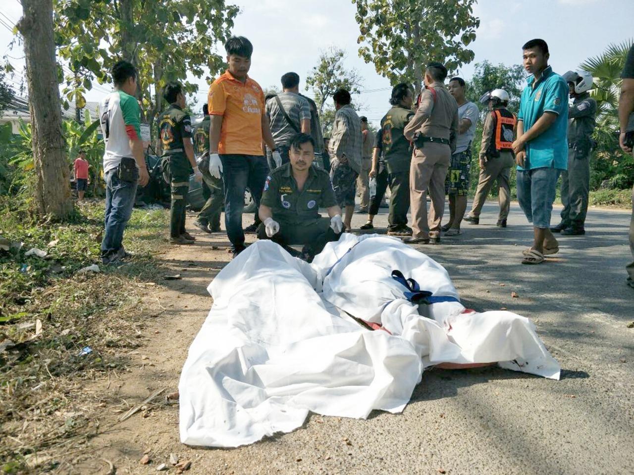 พบกระบะโตโยต้า รุ่นไมตี้เอ็กซ์ สีเขียว ใส่หลังคาทรงสูง ทะเบียน บร-9493 พิษณุโลก เสียหลักพุ่งชนอัดติดอยู่กับต้นไม้ข้างทาง ฝั่งขาเข้าตัวตลาดเมืองเก่า ภายในรถ พบผู้เสียชีวิต 2 ราย บริเวณที่นั่งด้านหน้าและบาดเจ็บสาหัสอีก 2 รายอยู่ที่เบาะแค็บด้านหลัง จนท.กู้ภัยต้องใช้เครื่องมือตัดถ่าง ใช้เวลากว่าครึ่ง ชม.จึงนำศพผู้เสียชีวิตและบาดเจ็บออกมารีบนำส่ง รพ.สุโขทัย ทันที ทราบชื่อผู้เสียชีวิตภายหลังคือ นายวุฒิชัย อิแจ้ อายุ 21 ปี ชาวบ้าน ม.2 ต.หอกลอง อ.พรหมพิราม จ.พิษณุโลก เป็นคนขับ และ นายสมชาย แจ่มจำรัส อายุ 24 ปี ชาวบ้าน ม.2 ต.หอกลอง อ.พรหมพิราม จ.พิษณุโลก นั่งหน้ามาคู่กัน ส่วนผู้ได้รับบาดเจ็บ 2 คน ทราบชื่อคือ นายภาณุวัฒน์ เชื่อมไทยสงค์ อายุ 20 ปี ชาวบ้าน ถ.วิสุทธิกษัตริย์ ต.ในเมือง อ.เมือง จ.พิษณุโลก และ นายฉัตรเงิน สุขพงษ์ อายุ 33 ปี ชาวบ้าน ม.11 ต.หัวรอ อ.เมือง จ.พิษณุโลก