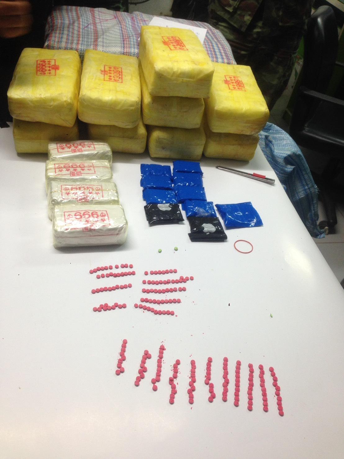 เมื่อเวลา 18.30 น.วันที่ 23 ธ.ค.61 นายปกรณ์ สุริวรรณ นอภ.พญาเม็งราย จ.เชียงราย ได้รับแจ้งจาก กำนัน ต.แม่เปา ว่าขณะที่อาสาสมัครรักษาความสงบหมู่บ้าน ออกตรวจพื้นที่ ได้มีชาวบ้านแจ้งว่าพบกระสอบปุ๋ยบรรจุยาบ้าจำนวนมากซุกซ่อนไว้บริเวณป่ากล้วย (พิกัด PC 204028) หมู่ 1 บ.สันเจริญ ต.แม่เปา ห่างจากหมู่บ้าน 1 กม.เมื่อได้รับแจ้งจึงประสานทหาร บก.ควบคุมที่ 3 ซึ่งได้รับมอบหมายจาก ศป.ปส.ชน. ให้รับผิดชอบพื้นที่ และตำรวจ สภ.พญาเม็งราย อส. ไปที่ตรวจที่เกิดเหตุ ห่างจากถนนระหว่างหมู่บ้าน 500 เมตร พบกระสอบปุ๋ยบรรจุยาบ้า ประทับตราหน้าห่อ เลข 999 จำนวน 2 แพคใหญ่ ๆละ 100,000 เม็ด รวมยาบ้า 200,000 จึงยึดไว้เป็นของกลาง นำส่ง พงส.สอบสวนสภ.พญาเม็งราย ดำเนินคดีสอบสวนขยายผล
