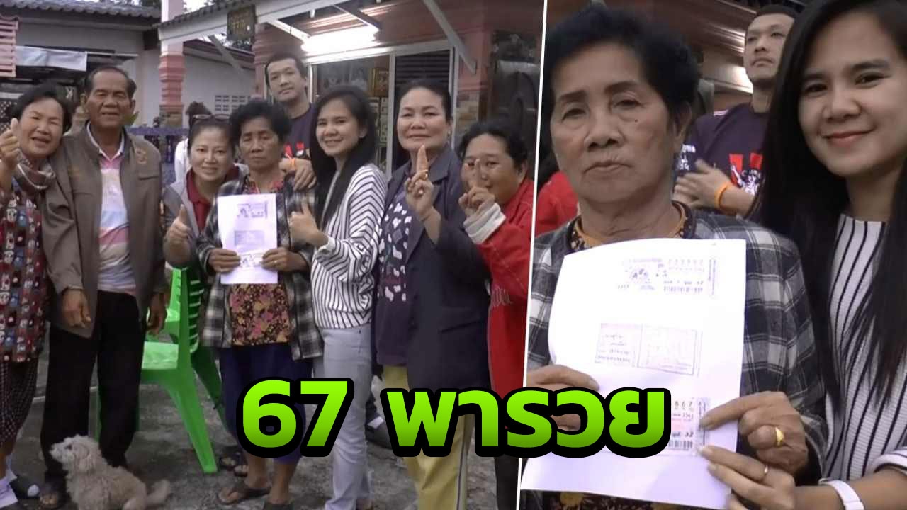 คุณยายที่พะเยา ไม่ค่อยได้ซื้อลอตเตอรี่ แต่งวดสุดท้ายของปี ขอซื้ออายุตัวเอง เลขท้าย 67 ปี ดวงดีรับปีใหม่ ถูกรางวัลที่ 1 หมายเลข 735867 รับ 6 ล้าน