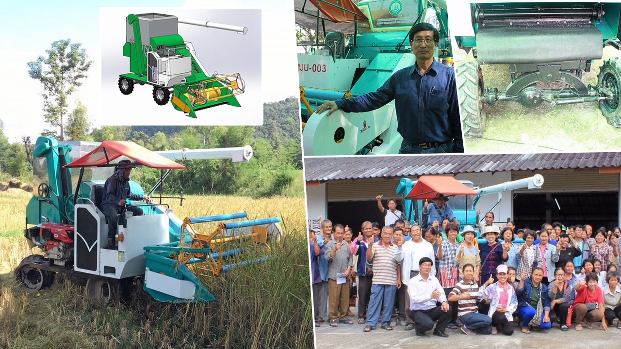 รศ.เสมอขวัญ ตันติกุล และ อ.พัฒนฌาน วิเชียรรัตน์ คณะวิศวกรรมและอุตสาหกรรมเกษตร มหาวิทยาลัยแม่โจ้ จึงร่วมกันคิดออกแบบรถเกี่ยวนวดข้าวขนาดเล็ก ราคาต่ำไม่เกิน 2 แสนบาท เพื่อกลุ่มเกษตรกรสหกรณ์สามารถซื้อไว้ใช้บริการแก่สมาชิกได้