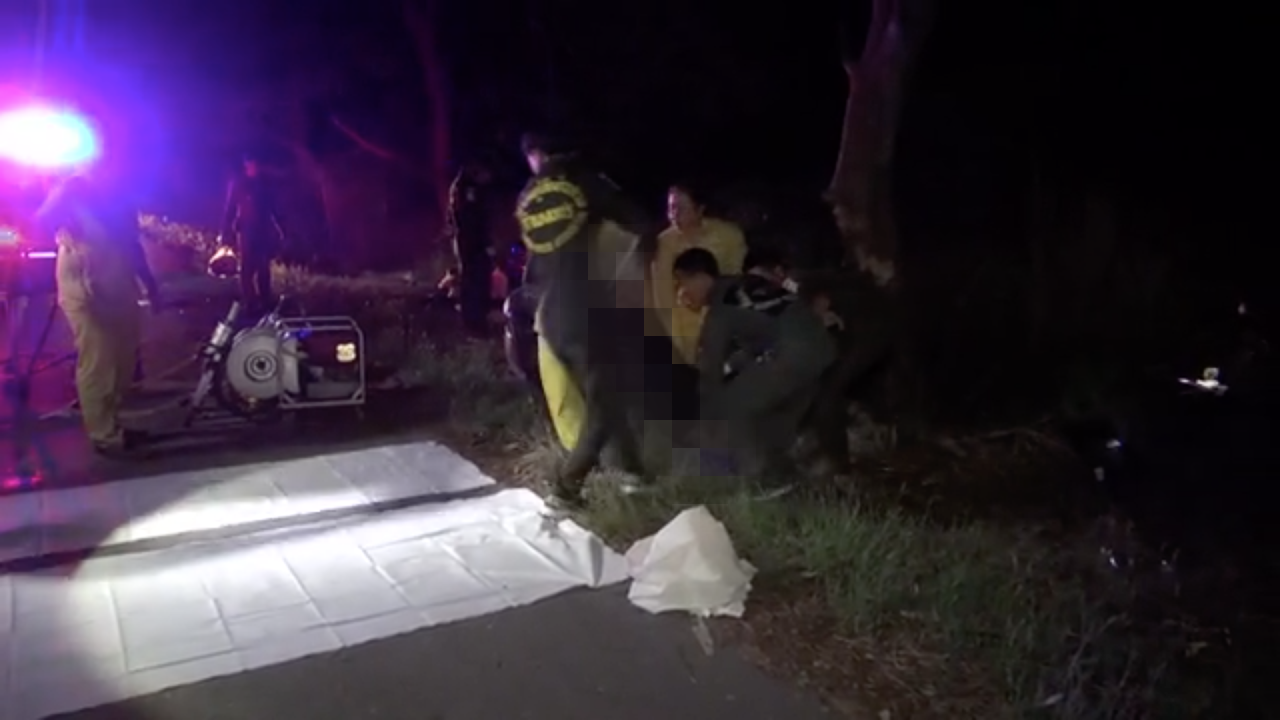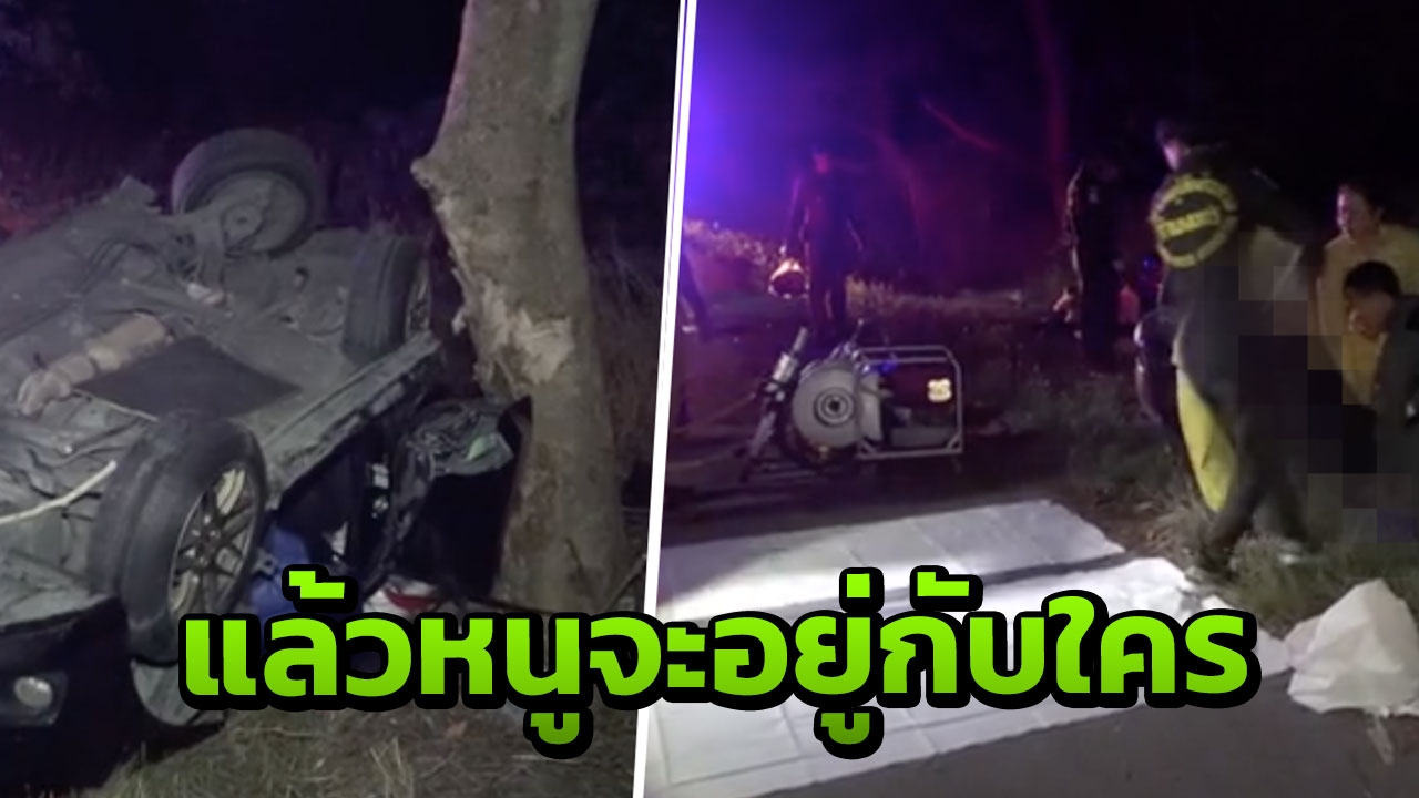 สุดเศร้า! พ่อและลูกสาววัย 16 ขับเก๋งมารับแม่จากลำปาง ไปเที่ยว กทม. รถเสียหลักชนต้นไม้ริมทางที่กำแพงเพชร พ่อแม่ดับคู่ เหลือลูกสาวคนเดียว จนท.ใช้เครื่องตัดถ่างช่วยออกมา เร่งนำส่ง รพ. คาดคนขับหลับใน