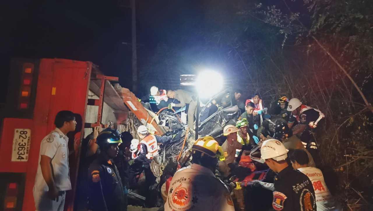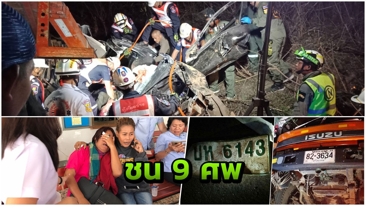 คนขับหกล้อรับเหมาเดินระบบไฟฟ้า อ้างเบรกแตก เกียร์รูดประสานงาปิกอัพดับ 9 ญาติรับศพร่ำไห้ระงม เผยคนในครอบครัวเสียชีวิต 4 ศพ โดยเฉพาะลูกสาววัยเพียง 9 เดือน พบทะเบียนรถ 2 คัน มีเลข 3 ตัว เหมือนกันเป๊ะ