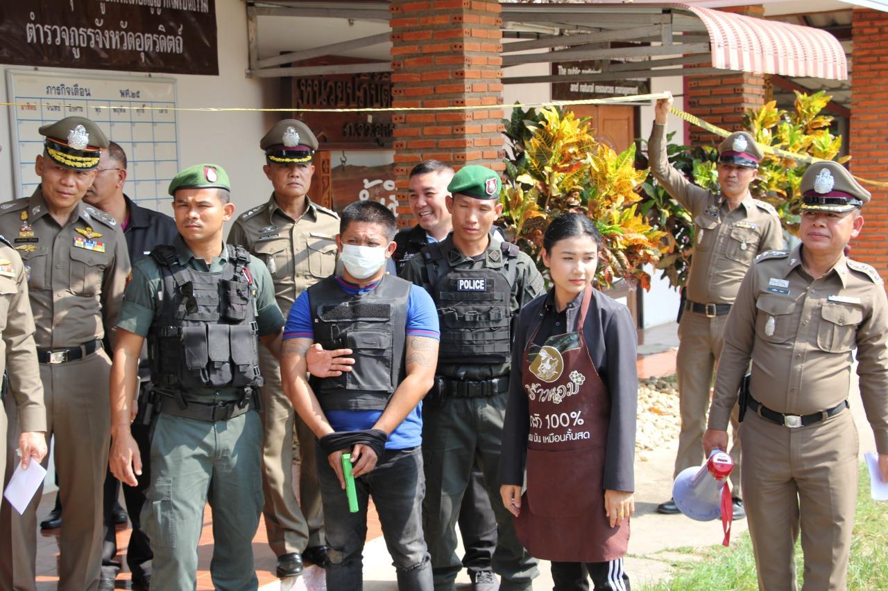 เมื่อเวลา 10.30 น.วันที่ 16 มกราคม 62 ที่ตำรวจภูธรจังหวัดอุตรดิตถ์ ถนนสาย พิษณุโลก-อุตรดิตถ์ พล.ต.ท.เฉลิมเกียรติ ศรีวรขาน รอง ผบ.ตร.(ปป) สนง.ตำรวจแห่งชาติ เดินทางมาแถลงข่าวการจับกุมและทำแผนจำลองประกอบคำรับสารภาพกับผู้ก่อเหตุ ฆ่ายกครัว 5 ศพ พร้อมด้วย พล.ต.ท.สุธีร์ เนรกัณฐี อ ผบช.ภาค 6 และพ.ต.อ.คีรี เกียรติสาร รอง ผบก.ภ.จ.อุตรดิตถ์ พ.ต.อ.สุเทพ ประภากรณ์ รอง ผบก.ภ.จ.อุตรดิตถ์ ร่วมแถลงข่าวและทำแผนจำลอง หลังจับกุมตัวที่จังหวัดระนองที่ผ่านมาและนำตัวมาแถลงข่าวและทำแผนจำลองดังกล่าว ในขั้นตอนการฆ่า หากไปที่เกิดเหตุหวั่น ญาติๆและเพื่อนบ้านจะประชาทัณฑ์