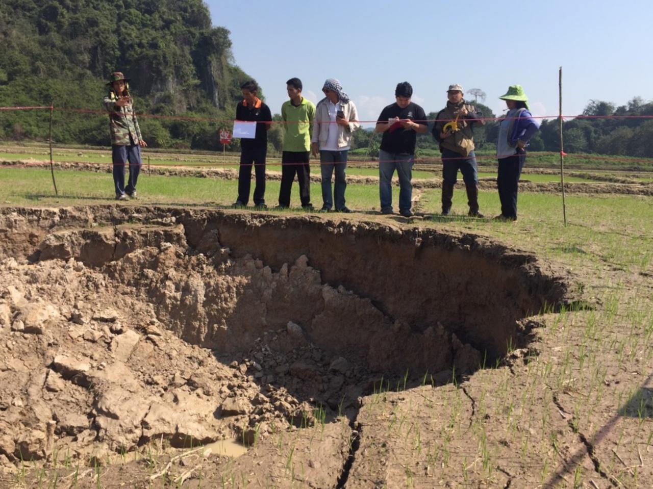 ด้าน นายใจ เจ้าของแปลงนา กล่าวว่า ที่นาเกิดการยุบตัวเมื่อวันที่ 13 ม.ค. ได้ไปแจ้งให้ นายอุดร บุญมา ผู้ใหญ่บ้านเข้ามาดู และรายงานเป็นลำดับชั้น ซึ่งไม่เกิดความกลัวแต่อย่างใด และไม่พบว่ามีการขยายตัวมากขึ้น แต่ก็โชคดีขณะเกิดเหตุไม่มีคนอยู่ในบริเวณใกล้เคียง จึงไม่เกิดอันตรายแก่ใคร แต่สิ่งที่เสียหายคือต้นข้าวกำลังแตกเจริญงอกงาม ได้ถูกผู้คนที่แตกตื่นและผู้เกี่ยวข้องเข้ามาเหยียบย่ำได้รับความเสียหาย.