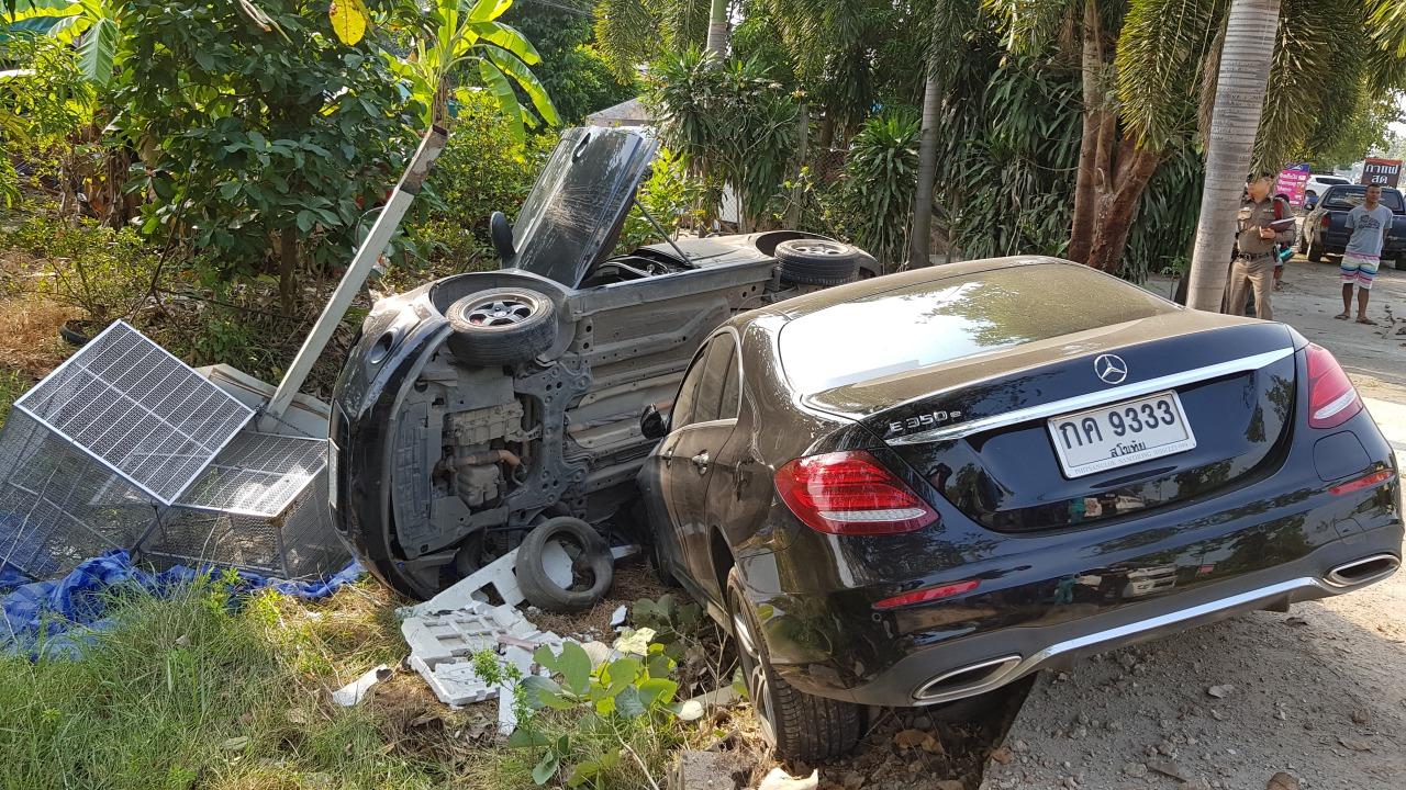 เมื่อเวลา 09.30 น. วันที่ 22 ม.ค. ร.ต.อ.ธเนตร วงษ์ปริง รอง สว.(สอบสวน) สภ.ชุมชนมหาวิทยาลัยนเรศวร อ.เมือง จ.พิษณุโลก รับแจ้งมีเหตุรถชนกันบนถนนสายพิษณุโลก–นครสวรรค์ บริเวณบ้านหมู่ 4 ต.ท่าทอง ตกลงไปในคูน้ำริมถนนทำให้มีผู้บาดเจ็บ ไปตรวจสอบพร้อมเจ้าหน้าที่กู้ภัยมูลนิธิมิตรภาพมงคลธรรม พบรถยนต์เก๋งยี่ห้อเมอร์เซเดส-เบนซ์ รุ่น 530 E สีดำ ทะเบียน กค 9333 สุโขทัย สภาพหน้ารถพังเสียหายชนอัดก๊อบปี้อยู่กับรถยนต์เก๋งโซนิค เชฟโรเลต สีน้ำตาล ทะเบียน กม 5195 พิษณุโลก ที่พลิกตะแคงขวาอยู่ในคูน้ำ ทับรถจักรยานยนต์ ยี่ห้อฮอนด้า เวฟไอ 110 สีดำ และรุ่นเวฟแซด สีน้ำเงิน ไม่ติดแผ่นป้ายทะเบียนทั้ง 2 คันอยู่ นอกจากนี้ยังมีเต็นท์และกรงสุนัขที่วางขายอยู่ริมถนนถูกชนได้รับความเสียหายด้วย
