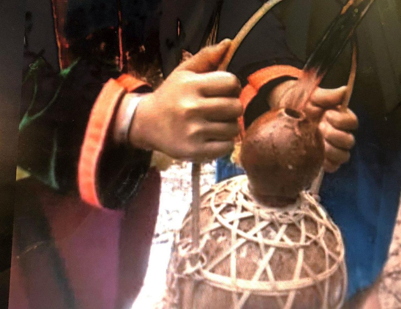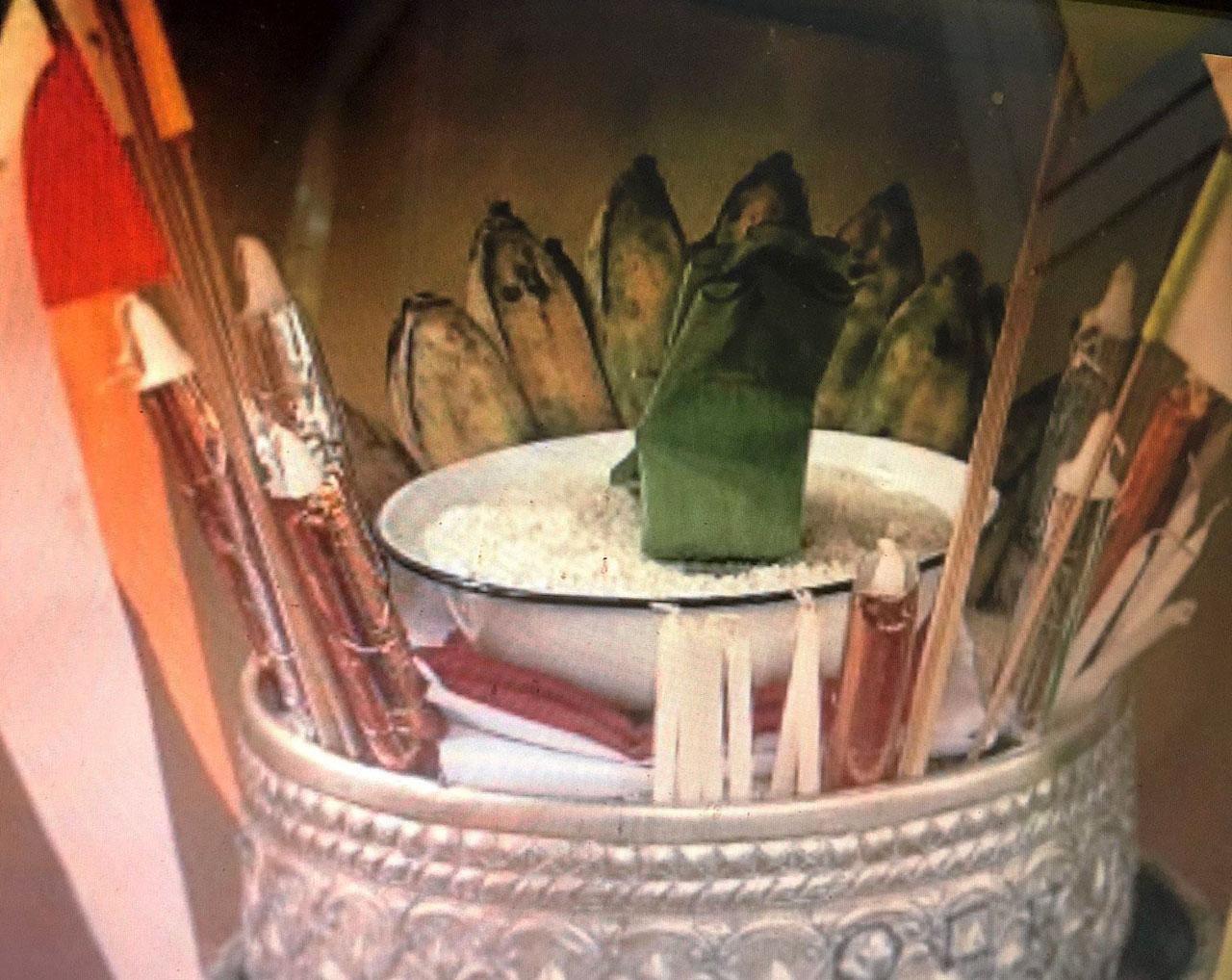 หญ้าที่ถักขึ้นมาบอกสัญลักษณ์แทนงูเขียวที่คอยคุ้มครองชุมชน และทุกครัวเรือนจะมีงูเขียวซึ่งถักด้วยหญ้าประดับไว้กับคานประตูหน้าเรือนทุกหลัง