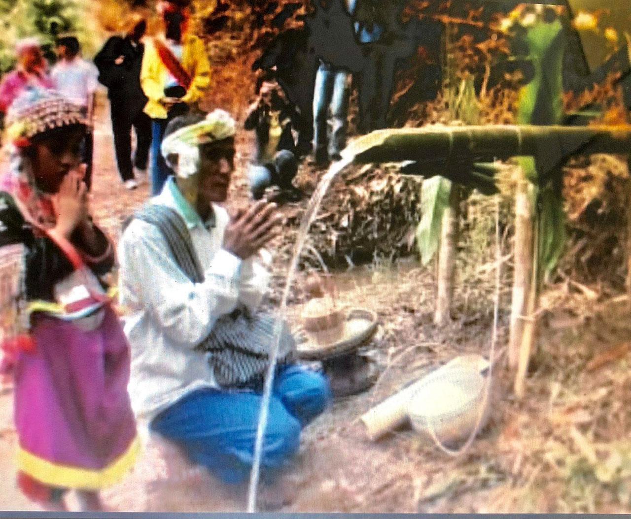 บริบทสุดท้ายของพิธีสืบชะตาน้ำยังดำเนินต่อไปเมื่อผู้นำอาวุโสแห่งบ้านนอแลได้นำเอาชาซึ่งเป็นพืชสายโลหิตแห่งชีวิตชาวปะหล่อง ด้วยผูกพันกันมาชั่วชีวิตนับแต่บรรพบุรุษเป็นต้นมา
