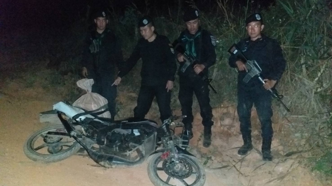 เมื่อเวลา 21.00 น. วันที่ 8 มี.ค. 61 ขณะที่ ร.อ.สันติ ต๊ะหล้า ผบ.ร้อย ทพ.3102 นำกำลังตั้งด่านสกัดบริเวณบ้านไทยสามัคคี ม.16 ต.ตับเต่า อ.เทิง จ.เชียงราย เพื่อเฝ้าระวังการลักลอบขนยาบ้าผ่านเข้ามาในพื้นที่ จนกระทั่งพบรถ จยย. ต้องสงสัยวิ่งมาด้วยความเร็วสูงมาจากทางภูชี้ฟ้ามุ่งหน้าไปทางบ้านขุนห้วยไคร้ ม.14 ต.ตับเต่า โดยใช้เส้นทางลัดซึ่งเป็นทางลูกรังเข้าพื้นที่การเกษตร จึงให้เจ้าหน้าที่ไล่ติดตามไปเป็นระยะทางประมาณ 200 เมตร ซึ่งสภาพถนนเป็นทางแคบสูงชันและคดเคี้ยว พอถึงทางชันคนขับจยย.รถล้มจึงทิ้งรถวิ่งหนีเข้าป่าท่ามกลางความมืด