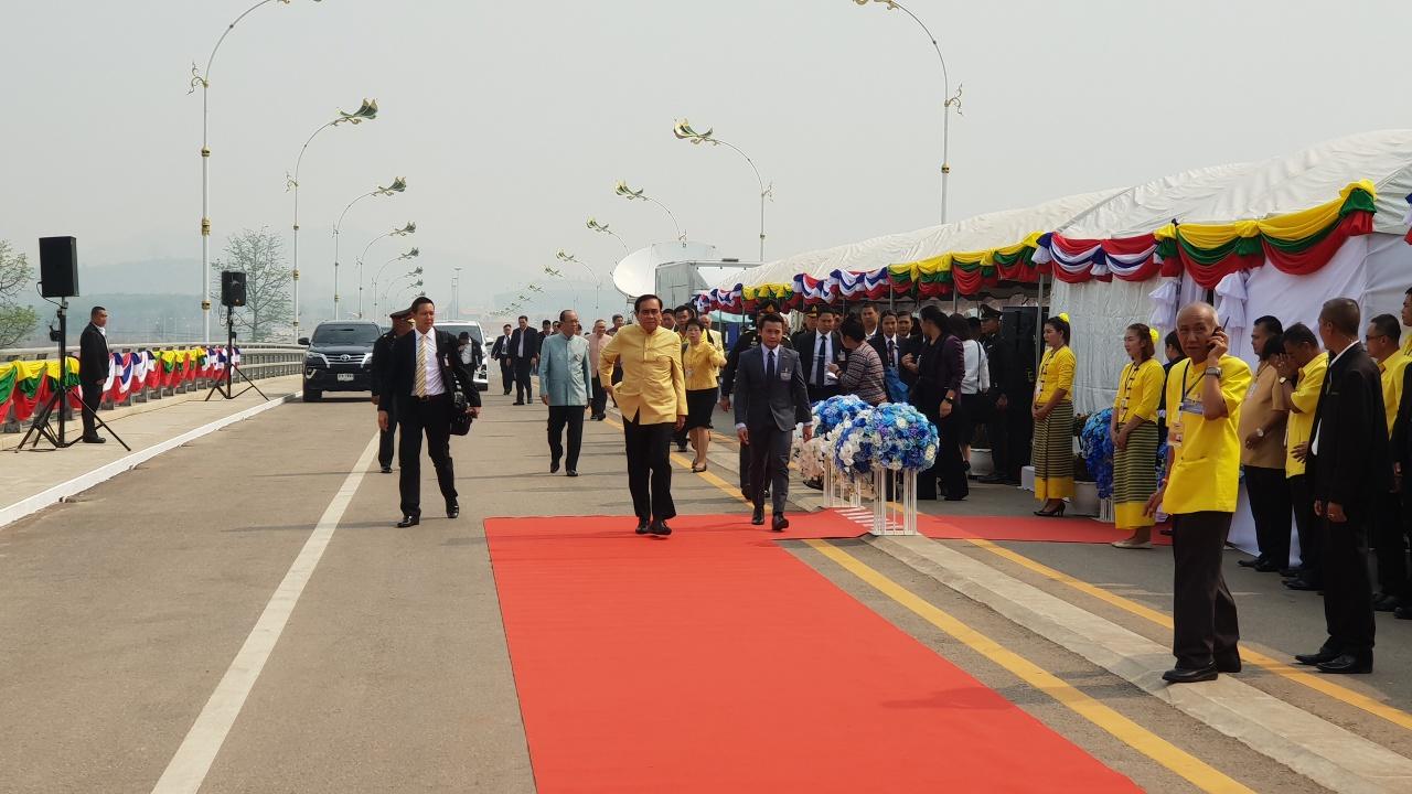 วันที่ 19 มี.ค. พลเอกประยุทธ์ จันทร์โอชา นายกรัฐมนตรี พลเอก อนุพงษ์ เผ่าจินดา รัฐมนตรีว่าการกระทรวงมหาดไทย นายอาคม เติมพิทยาไพสิฐ รัฐมนตรีว่าการกระทรวงคมนาคม และนายดอน ปรมัตถ์วินัย รัฐมนตรีว่าการกระทรวงการต่างประเทศ พร้อมคณะเดินทางไปยังกึ่งกลางสะพานมิตรภาพไทย-เมียนมา แห่งที่ 2 บ้านวังตะเคียน ตำบลท่าสายลวด อำเภอแม่สอด จังหวัดตาก เพื่อประกอบพิธีเปิดป้ายและร่วมฉลองการใช้สะพานมิตรภาพไทย-เมียนมา แห่งที่ 2 มีนางออง ซาน ซูจี ที่ปรึกษาแห่งรัฐเมียนมา นางขิ่นทุยมิต มุขมนตรีแห่งรัฐกะเหรี่ยง พร้อมคณะรัฐมนตรีและเจ้าหน้าที่ระดับสูงของเมียนมา ร่วมในพิธี ซึ่งนายกรัฐมนตรีไทย และที่ปรึกษาแห่งรัฐเมียนมา พร้อมคณะไทยและเมียนมา เข้าห้องรับรองเพื่อหารือข้อราชการ