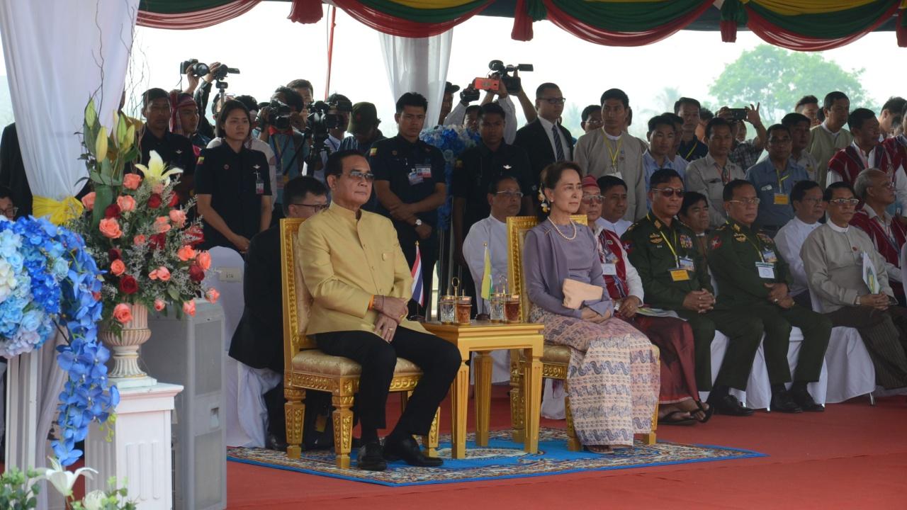 พล.อ.ประยุทธ์ จันทร์โอชา นายกรัฐมนตรี พบ ออง ซาน ซูจี เปิดป้ายสะพานมิตรภาพ ไทย เมียนมา แห่งที่ 2 อ.แม่สอด จ.ตาก พร้อมกล่าวแสดงความยินดีกับปชช.ทั้ง 2 ประเทศ