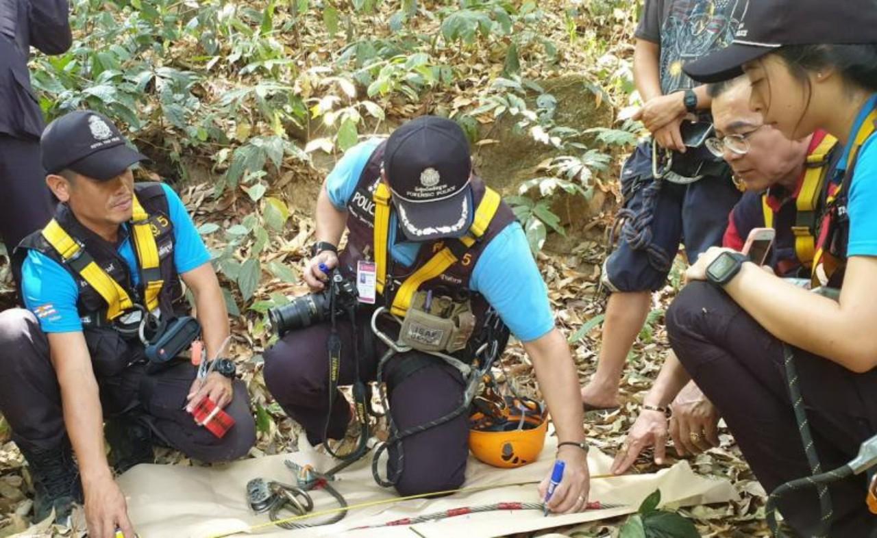หลังการตรวจสอบเสร็จ จนท.ได้มีการเก็บหลักฐานทั้งลวดสลิงและอื่นๆ คาดว่าอาจเป็นสาเหตุที่ทำให้นักท่องเที่ยวตกลงมา เพราะห่วงสลิงเหล็กที่ห้อยกับตัวนักท่องเที่ยวและรอกหลุดออกจากตัวล็อก เป็นเหตุให้นักท่องเที่ยวตกลงมา ความสูงประมาณ 20 เมตร โดยเจ้าหน้าที่กองพิสูจน์หลักฐานจะตรวจสอบอุปกรณ์ทั้งหมดว่าได้มาตรฐานหรือไม่ อุปกรณ์มีความเก่า หรืออุปกรณ์มีคุณภาพที่ใช้งานหรือไม่ เพื่อมาประกอบในสำนวนในการดำเนินการตามกฎหมาย