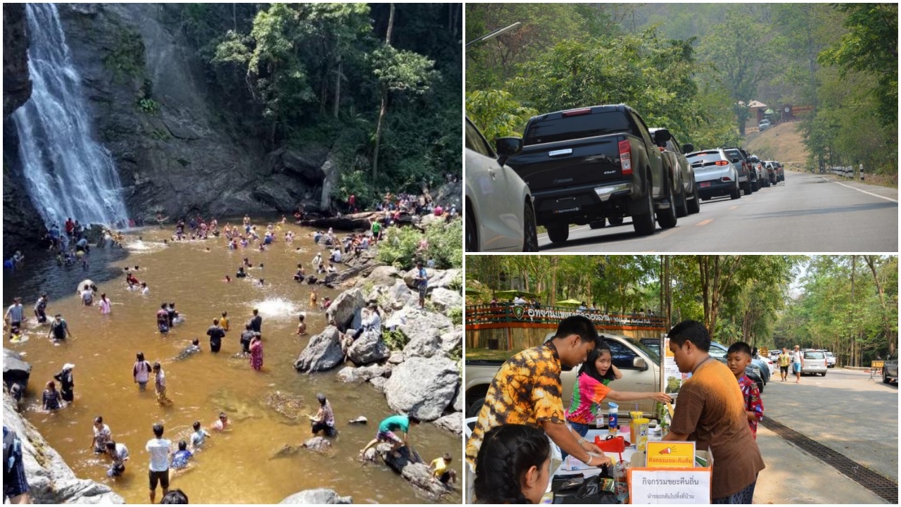 แต่ประชาชนที่มากับครอบครัวก็ไม่ย่อท้อ พยายามขับขี่เข้าไปซึ่งต้องใช้เวลากว่า 30 นาที ถึงด่านเก็บค่าธรรมเนียม เช่นเดียวกับที่น้ำตกคลองน้ำไหล ต.คลองน้ำไหล รถยนต์ก็ติดหนึบยาวกว่า 500 เมตร ทั้งนี้ทางเจ้าหน้าที่อุทยานฯ ได้อำนวยความสะดวกให้แก่นักท่องเที่ยว จัดที่จอดรถเพื่อรองรับนักท่องเที่ยวหลายจุด ทั้งบริเวณจุดจอดหน้าร้านค้าชุมชน จุดจอดก่อนถึงอุทยานและจุดจอดลานหน้าน้ำตก มีจุดนั่งพักผ่อน จุดรับประทานอาหาร รวมถึงจุดบริการปฐมพยาบาล เพื่ออำนวยความสะดวกแก่นักท่องเที่ยวอีกด้วย