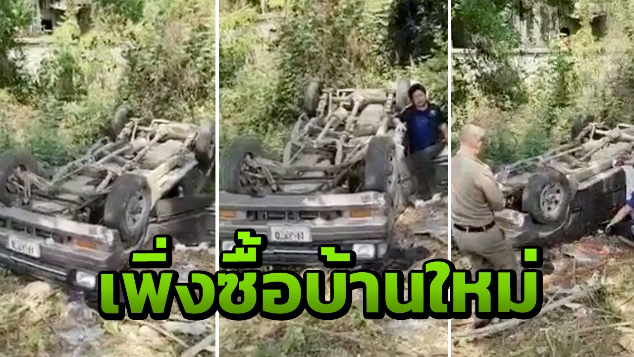 สุดสลด สองสามีภรรยากลับจากทำสวน ยังไม่ทันถึงบ้านที่ซื้อใหม่ในตัวเมืองเชียงราย กระบะที่ขับมาเกิดเสียหลักพุ่งตกข้างทางชนต้นไม้ พลิกคว่ำล้อชี้ฟ้า ตาย 1 เจ็บ 1